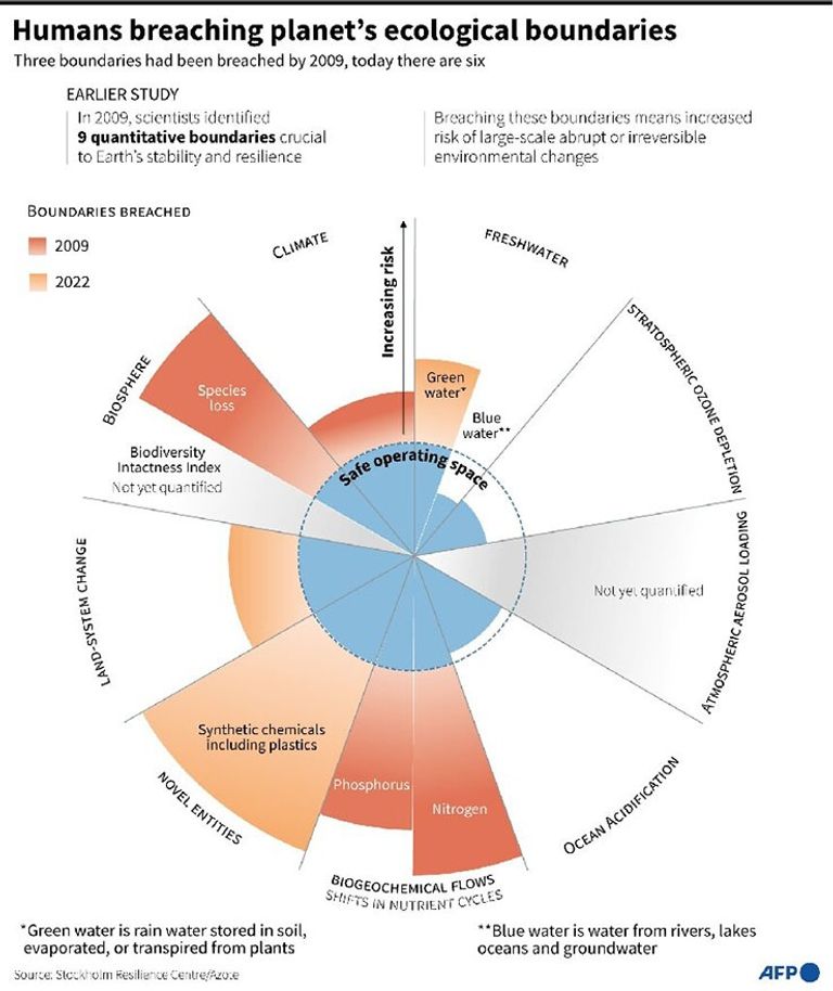 حددت لجنة الأرض الحدود الآمنة والعادلة للمناخ والتنوع البيولوجي والمياه العذبة وأنواع مختلفة من تلوث الهواء والتربة والمياه، مؤكدة في دراستها أنه تم اختراق معظمها بالفعل.