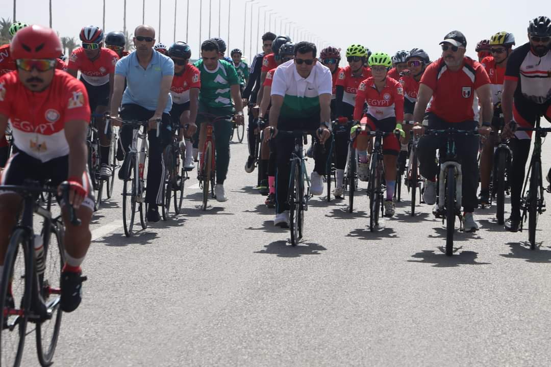 محافظة بورسعيد تشارك في ماراثون الدراجات الهوائية بالعاصمة الإدارية الجديدة (صور)