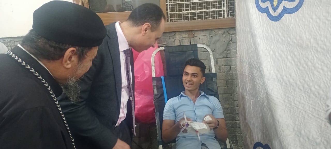 وكيل الصحة بالبحيرة يشارك في حملة للتبرع بالدم بكنيسة العائلة المقدسة