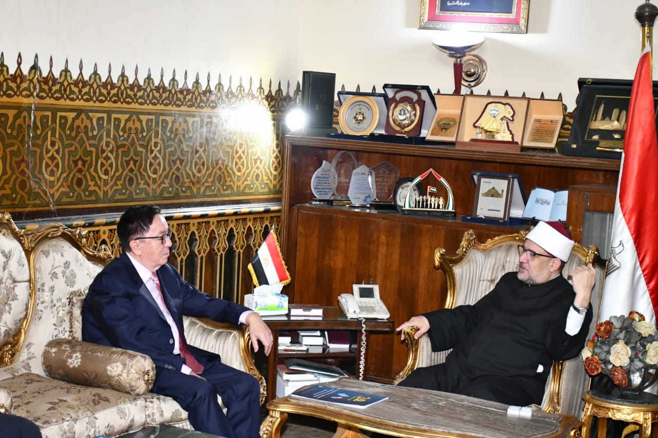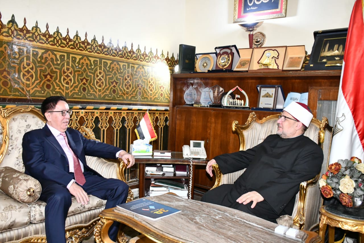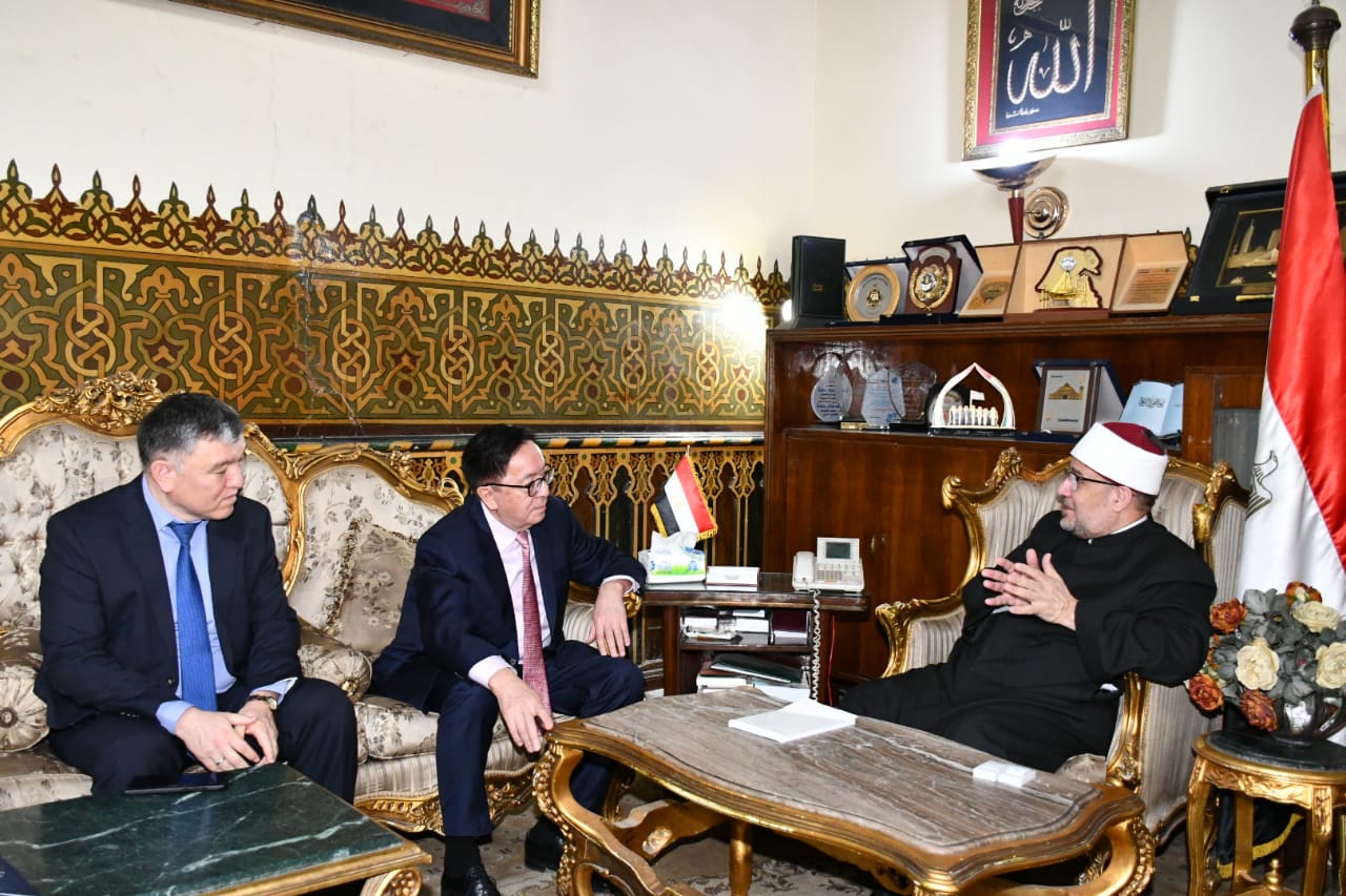 وزير الأوقاف يستقبل سفير كازاخستان قبل افتتاح مسجد الظاهر بيبرس