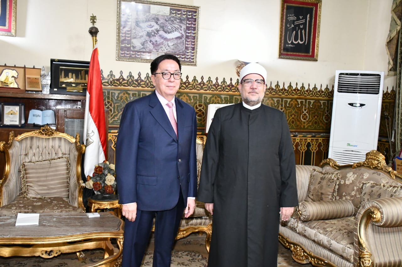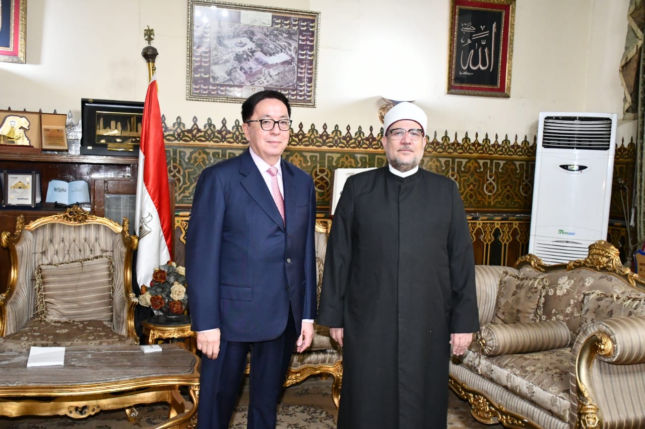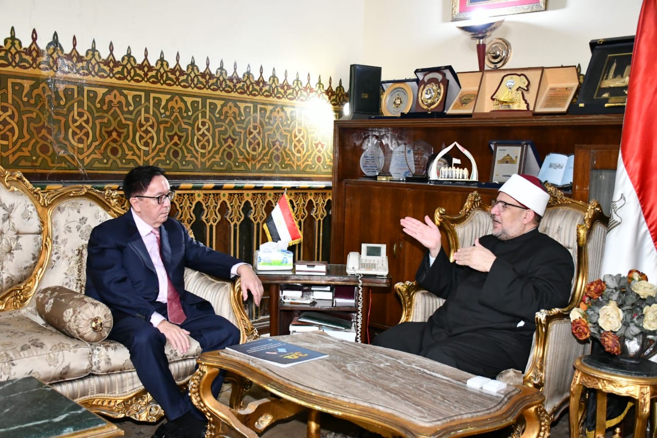 وزير الأوقاف يستقبل سفير كازاخستان قبل افتتاح مسجد الظاهر بيبرس