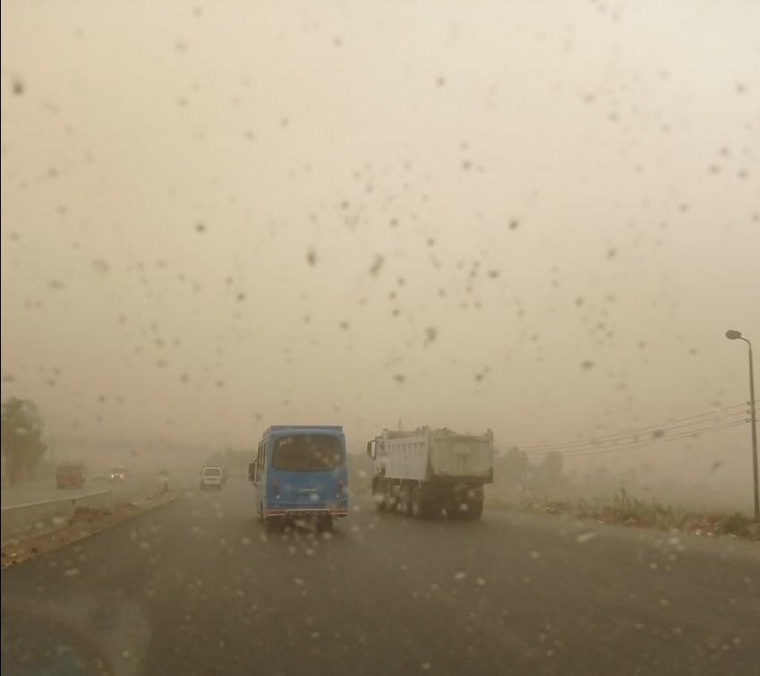 أما أحمد شتا فقال: "فيه عاصفة ترابية شديدة جدا وأمطار على الإقليمي (شبرا بنها الحر)، وفيه لوحات إعلانات بتقع على الطريق. اللي سايق يخلي باله، وربنا يسترها وينجي الجميع."