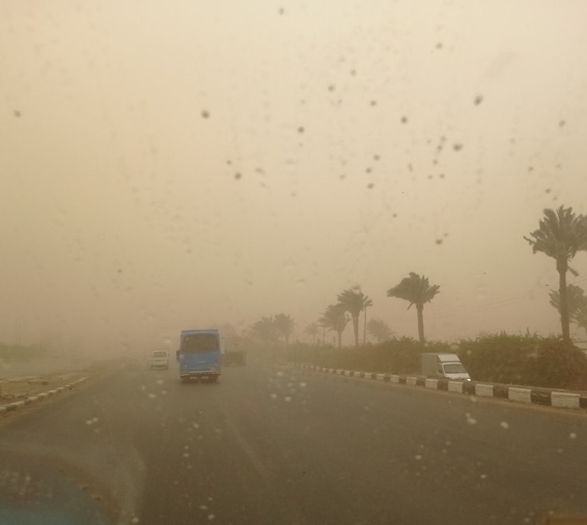 ورد سعد رضوان فقال: "عاصفة ترابية شديدة تبعها سقوط أمطار علي السادة المسافرين توخي الحذر"
