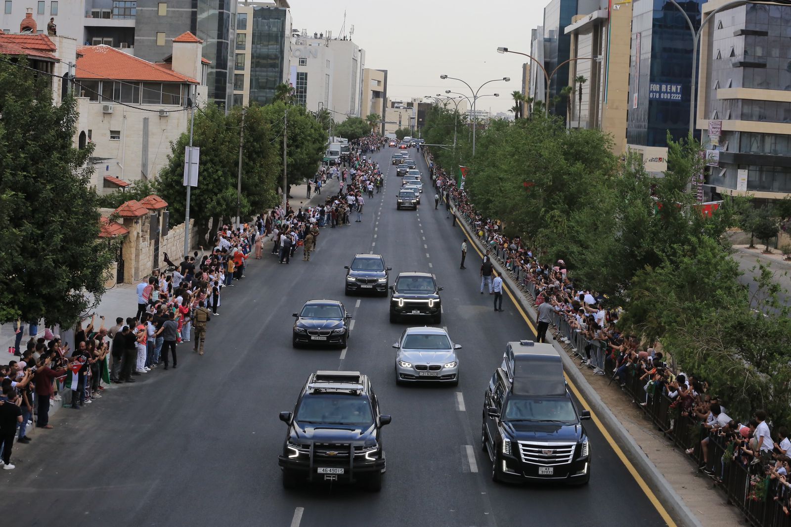 وغادر ولي العهد الأردني، والأميرة رجوة الحسين قصر زهران محاطين بالموكب الأحمر الذي سيسلك طرقا في العاصمة عمان متوجها إلى قصر الحسينية لاستكمال باقي مراسم الزفاف.