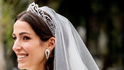 ووشح تاج الأميرة رجوة الحسين الذي ارتدته في حفل زفافها مساء اليوم، على الأمير الحسين بن عبد الله الثاني، ولي العهد بعبارة "رجوة من الله".