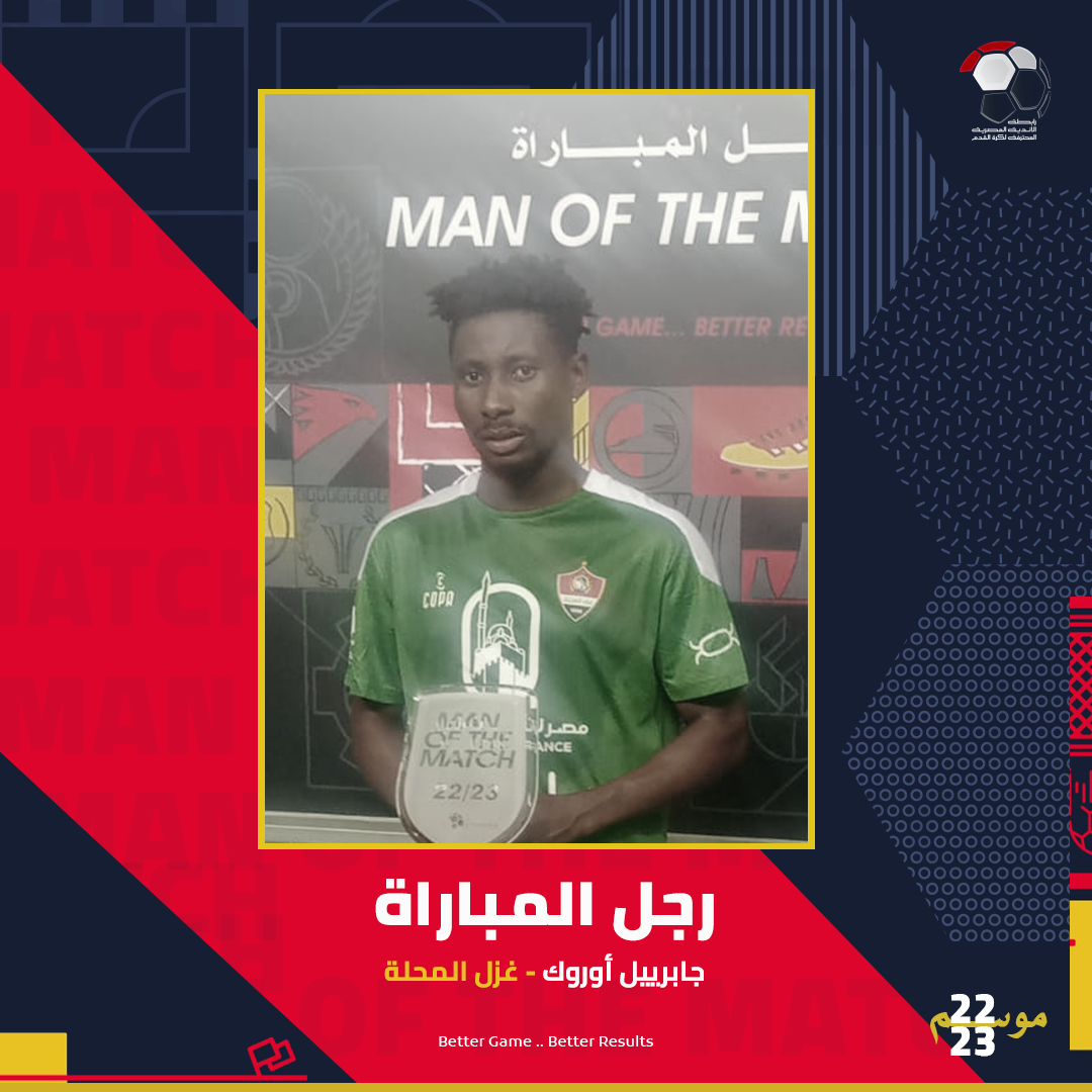 الدوري المصري، حصد جابريل أوروك لاعب غزل المحلة على جائزة رجل مباراة إنبي وغزل المحلة رغم خسارة فريقه بهدف نظيف.