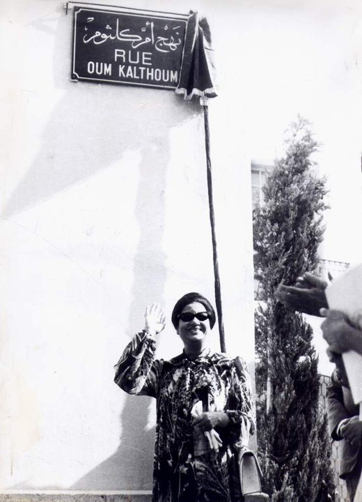 وفى المساء دعيت أم كلثوم لإزاحة الستار عن اللوحة الارشادية في الشارع الذى حمل اسمها في قلب العاصمة التونسية بحضور شيخ المدينة حسيب بن عمار شقيق عقيلة الرئيس التونسى وعبرت أم كلثوم عن سعادتها بقولها ( لا غرابة في هذا فتونس الخضراء ستبقى لها الأولوية في تكريم الفن والفنانين واحتضان الابداع والمبدعين ).