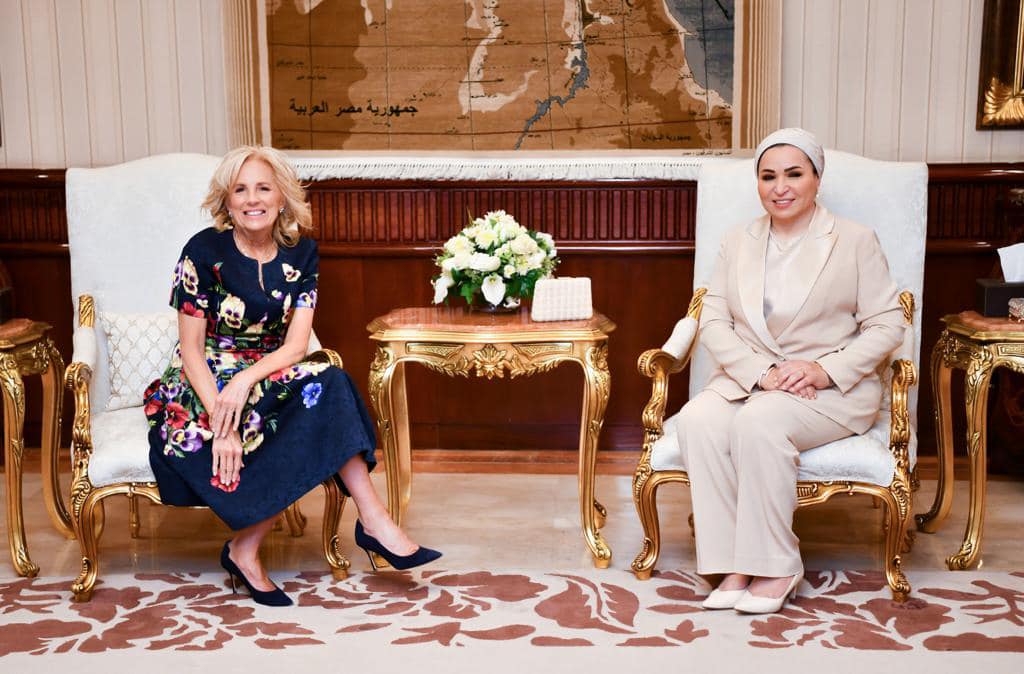 رسالة قرينة السيسي خلال استقبال جيل بايدن السيدة الأمريكية الأولى (صور)
