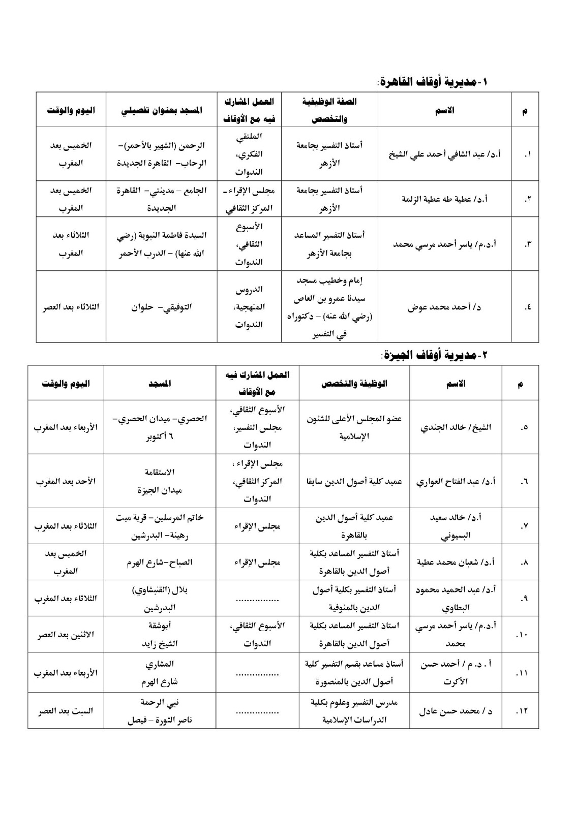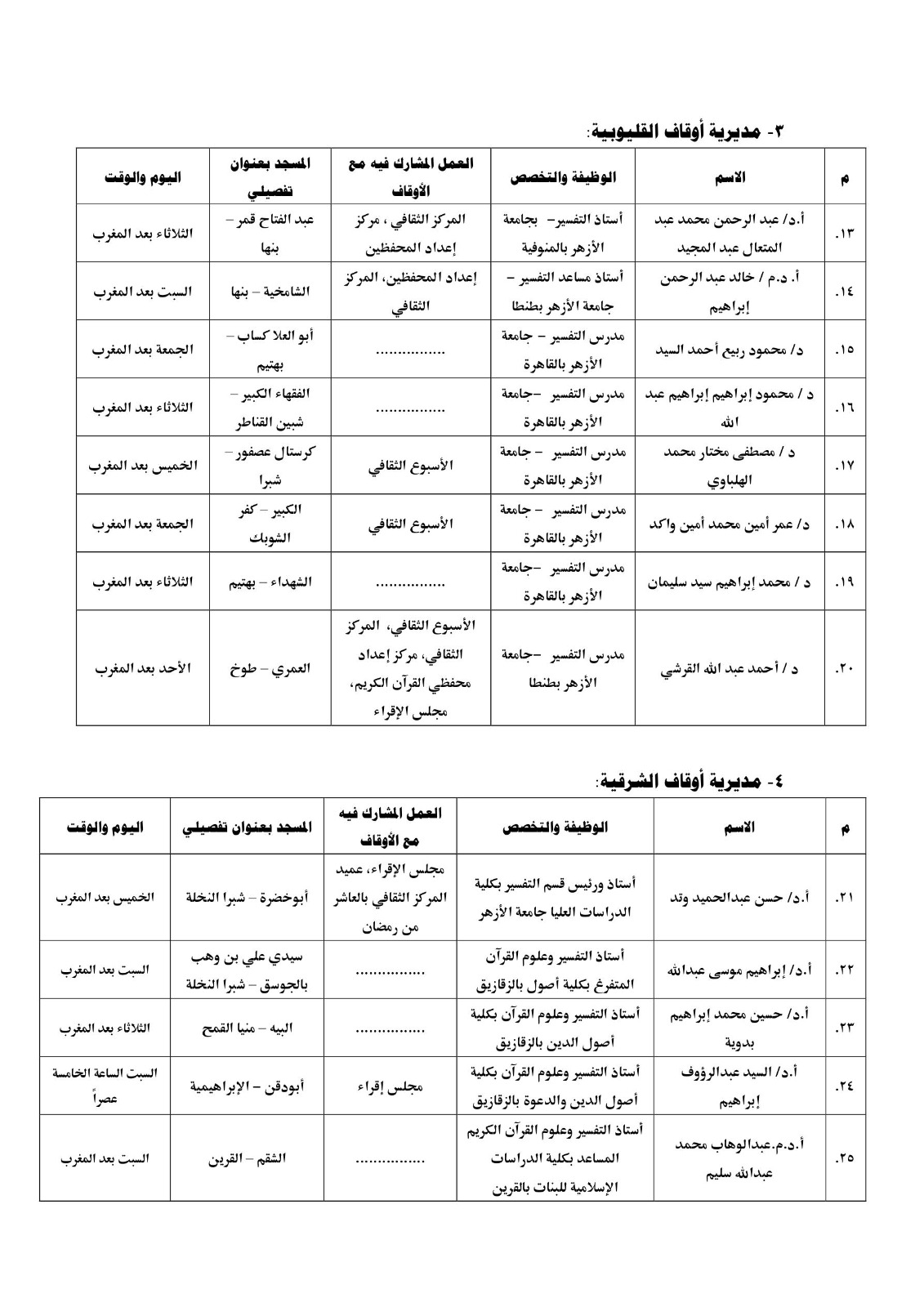 الأوقاف: 65 مسجدًا لتفسير القرآن الكريم بدءًا من الأربعاء القادم