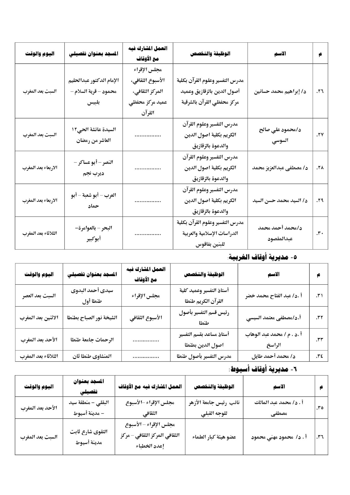 17. - الشرقية - مسجد السلام – المجاورة 36 – العاشر من رمضان