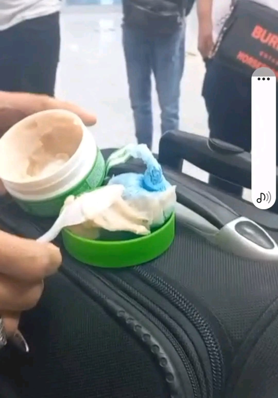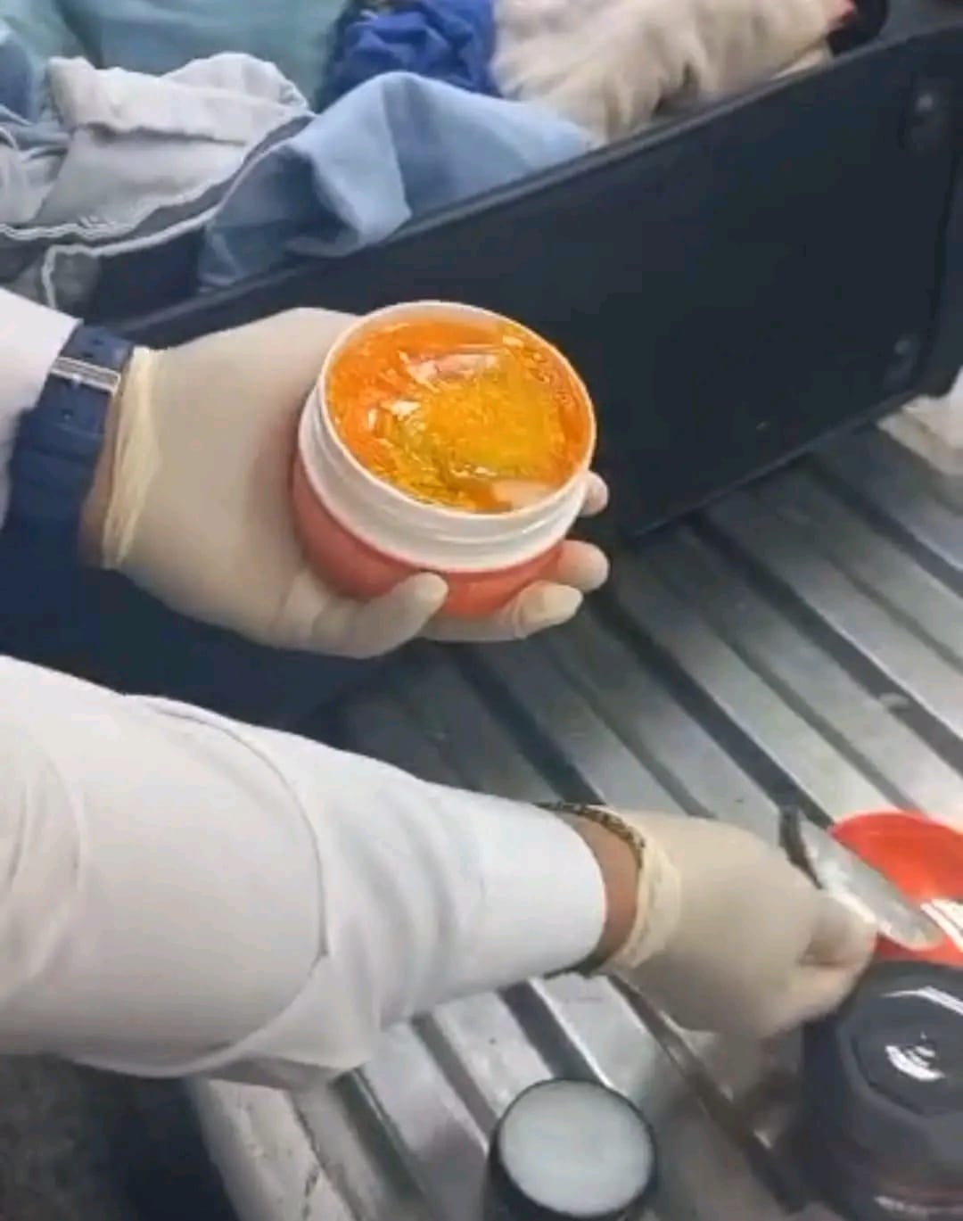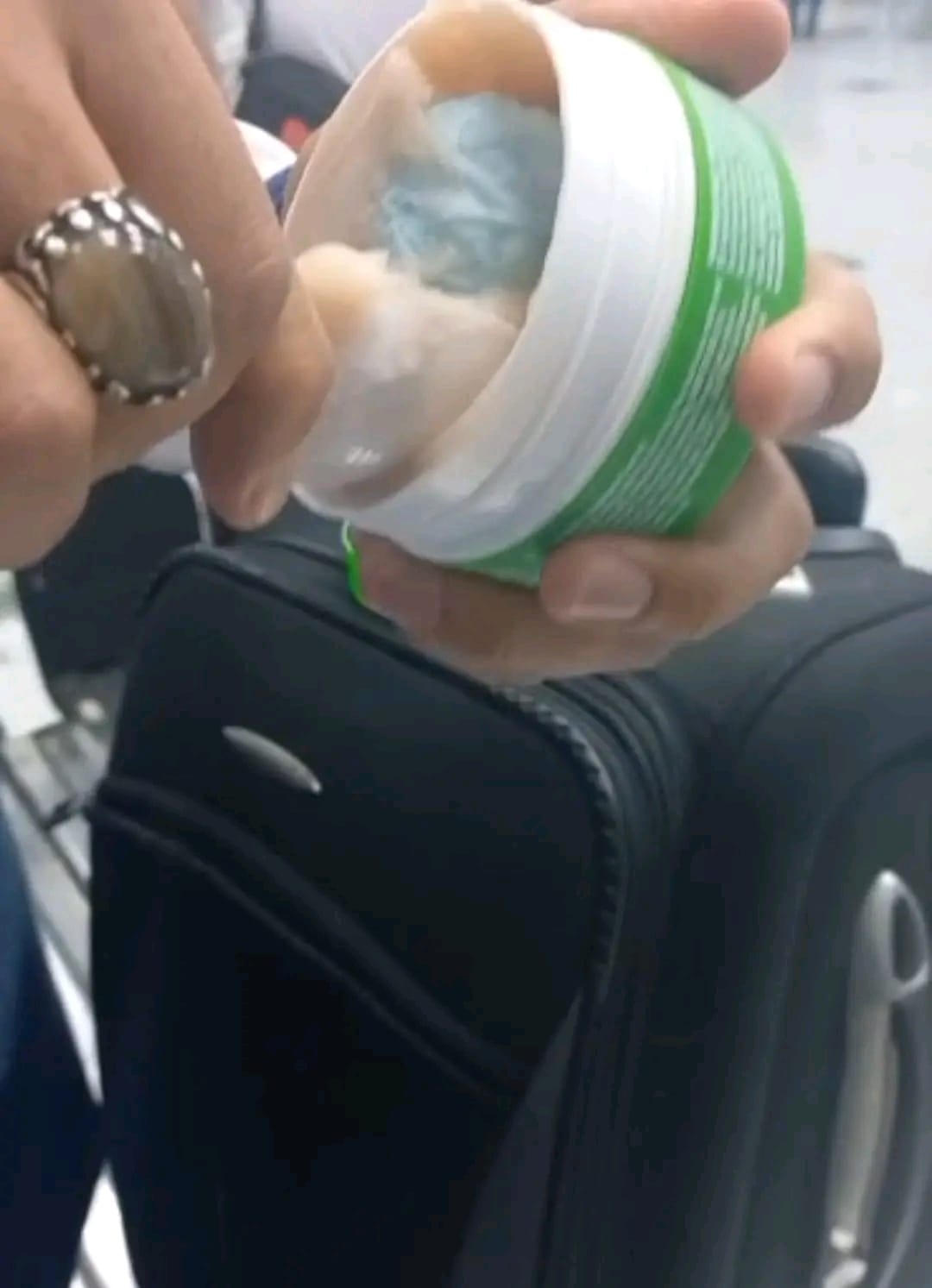وبتفتيش الراكب الثانى تبين وجود نفس النوع من علب الكريم بفتحها تبين أن بداخلها مادة الماريجوانا المخدره بوزن 14 جراما ملفوفة فى كيس شفاف.