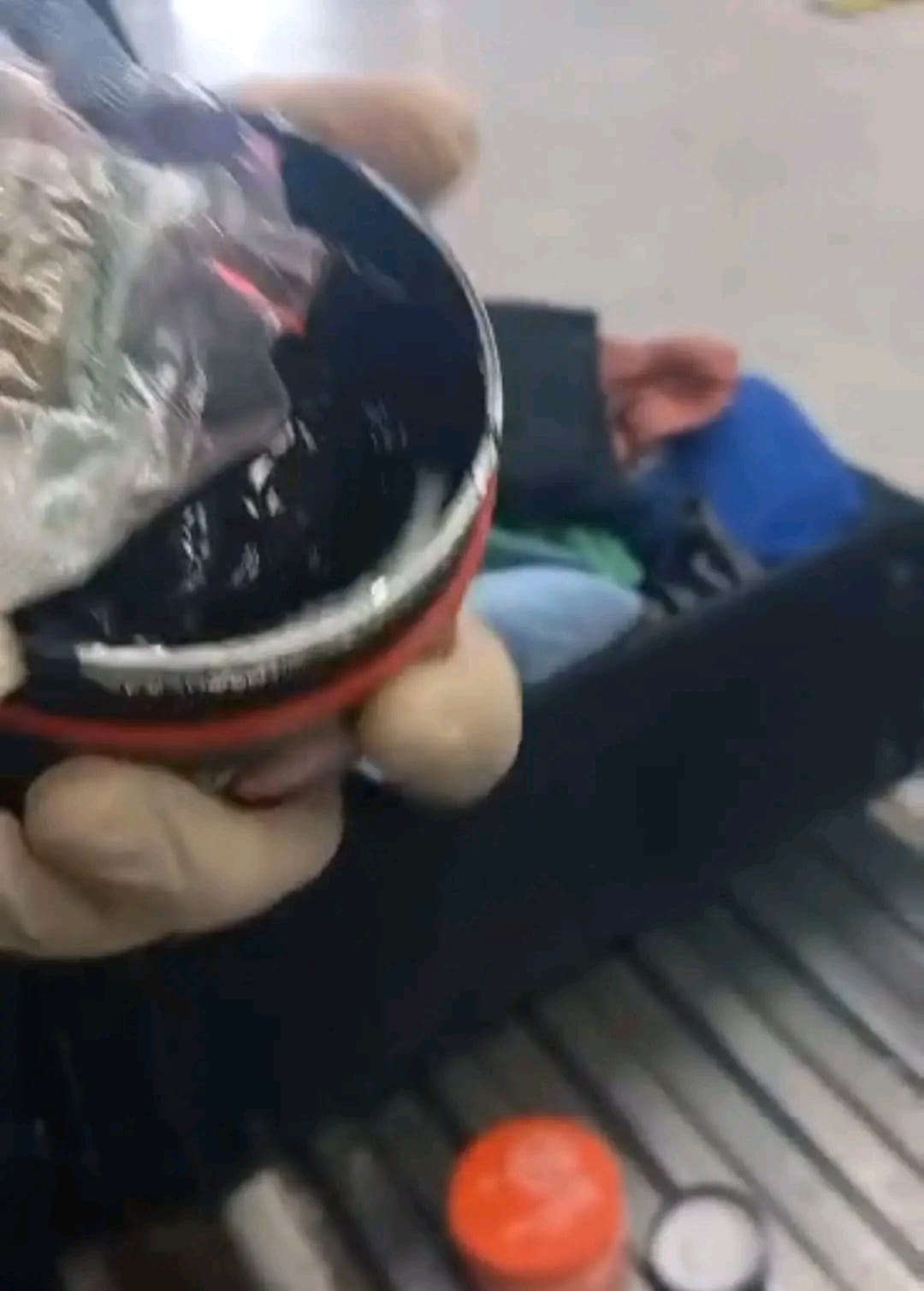 قام محمود رفعت المشرف على صالة الوصول الدولى، بتكليف مصطفى همام بتفتيش حقائب الراكبين وبتفتيش حقائب الراكب الأول لاحظ وجود علبة كريم للشعر بفتحها تبين وجود مادة بنية اللون داخل كيس شفاف داخل علب الكريم بوزن 24 جراما من الحشيش المخدر.