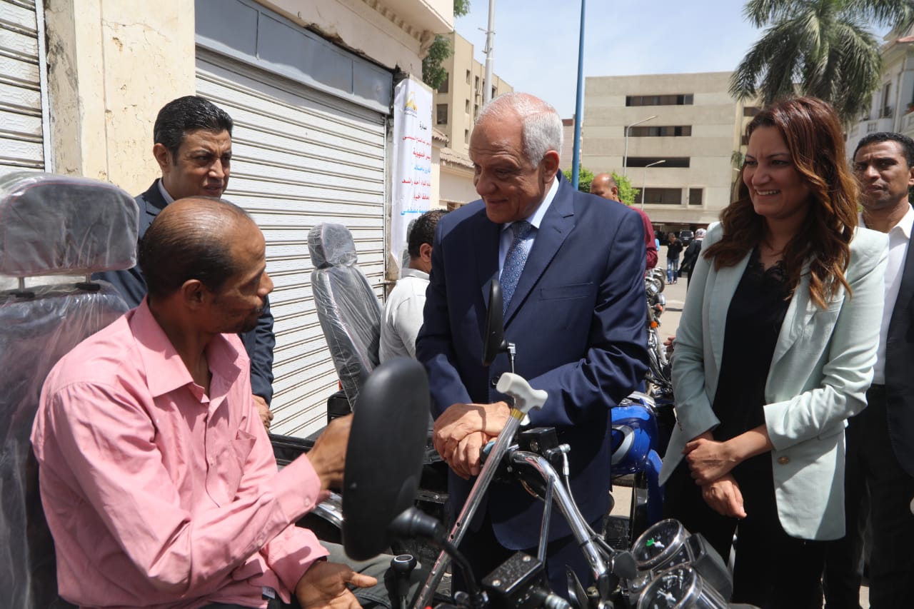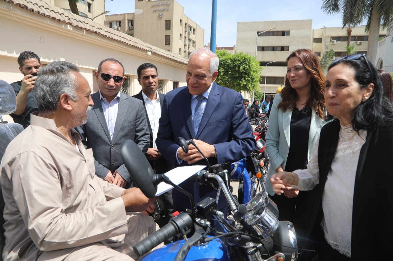 تسليم 57 دراجة نارية مجهزة طبيًا وكرسى كهربائى لذوى الهمم بالجيزة (صور)