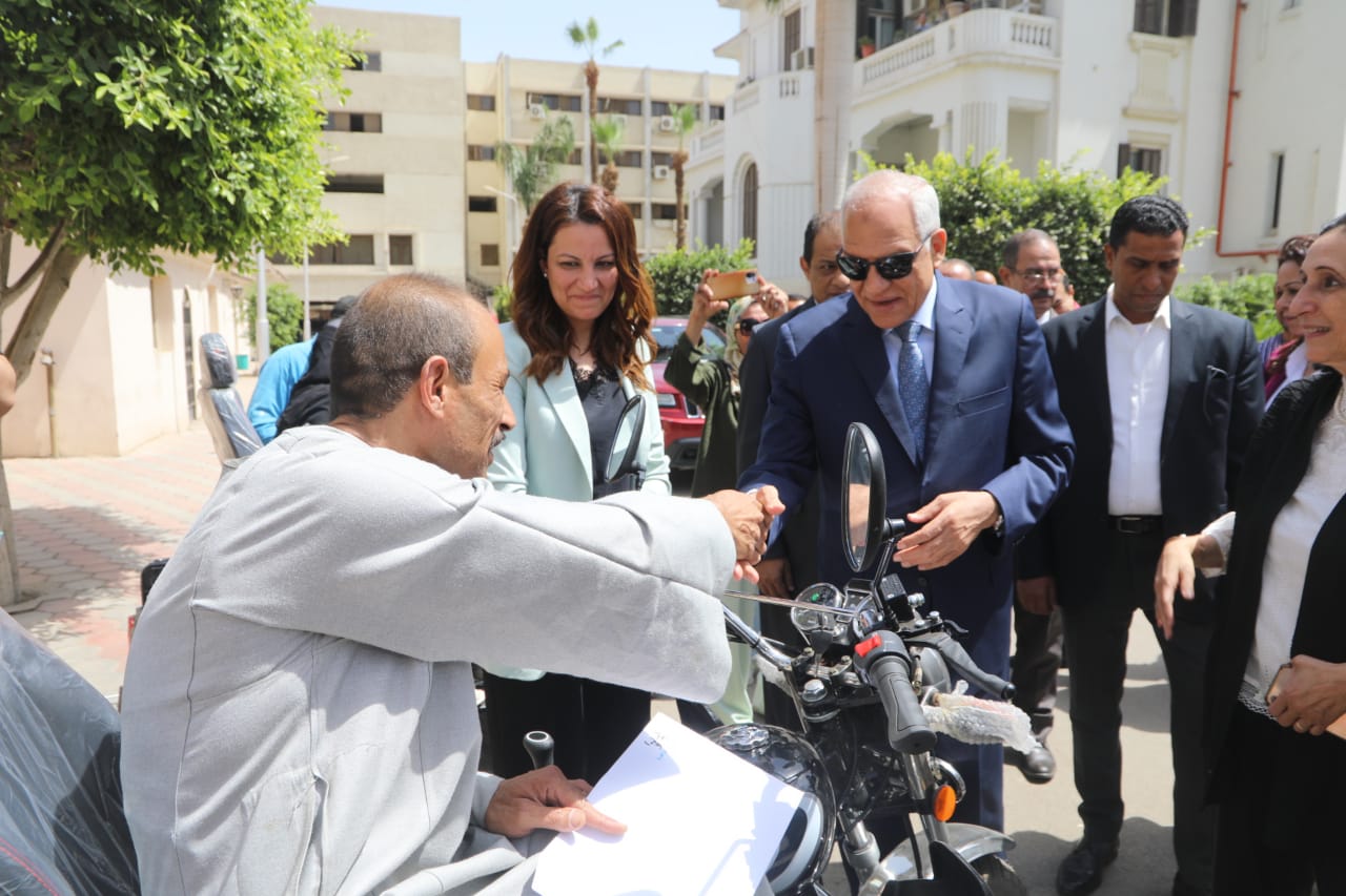 تسليم ٥٧ موتوسيكل مجهز طبيًا وكرسى لذوي الهمم
