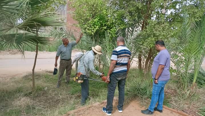وقامت فرق عمل قسمى النظافة وتحسين البيئة برفع الاتربة والمخلفات والتراكمات والقمامة وجميع الاشغالات والتعديات وازالة العشش والمخلفات من على أسطح العمارات وقص وتقليم الاشجار والنخيل وتهذيبها وتنظيفها بالمياه وازالة النباتات العشوائية ونقلها الى الاماكن المخصصة لها، وتسوية وتمهيد الطرق الداخلية بمعدات الوحدة المحلية لتيسير حركة المرور والحفاظ على المظهر الحضارى والجمالى.