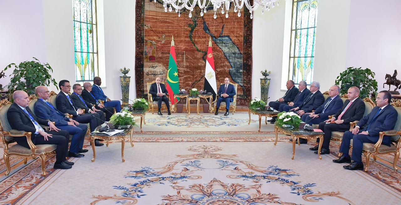 وصرح المتحدث الرسمي باسم رئاسة الجمهورية المستشار أحمد فهمي أن الرئيسين عقدا مباحثات منفردة أعقبتها جلسة مباحثات موسعة ضمت وفدي البلدين، حيث ثمن الرئيسان التطور المستمر في العلاقات المصرية الموريتانية وما شهدته الروابط التاريخية الممتدة بين البلدين الشقيقين من تقدم مضطرد خلال السنوات الأخيرة على الأصعدة كافة، خاصةً فيما يتعلق بالشق العسكري والأمني ومكافحة الإرهاب في منطقة الساحل.