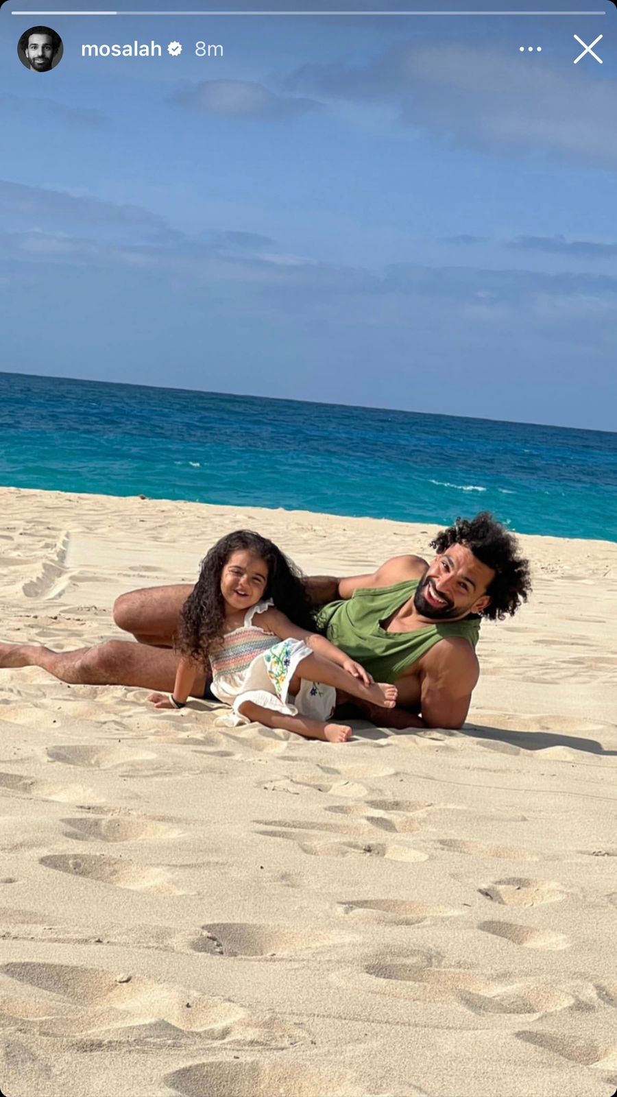 ظهر النجم المصري محمد صلاح لاعب ليفربول برفقة ابنته كيان خلال قضائه العطلة الصيفية بعد انتهاء الموسم الكروي في أوروبا.