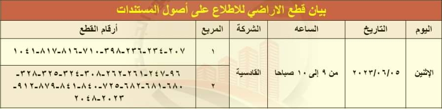 وحدد جهاز مدينة العبور الجديدة يوم الأثنين الموافق 5 - 6 من الساعة 9 حتي 10 صباحًا للاطلاع على أصول مستندات الملكية قطع أرضى الإسكان التالية: