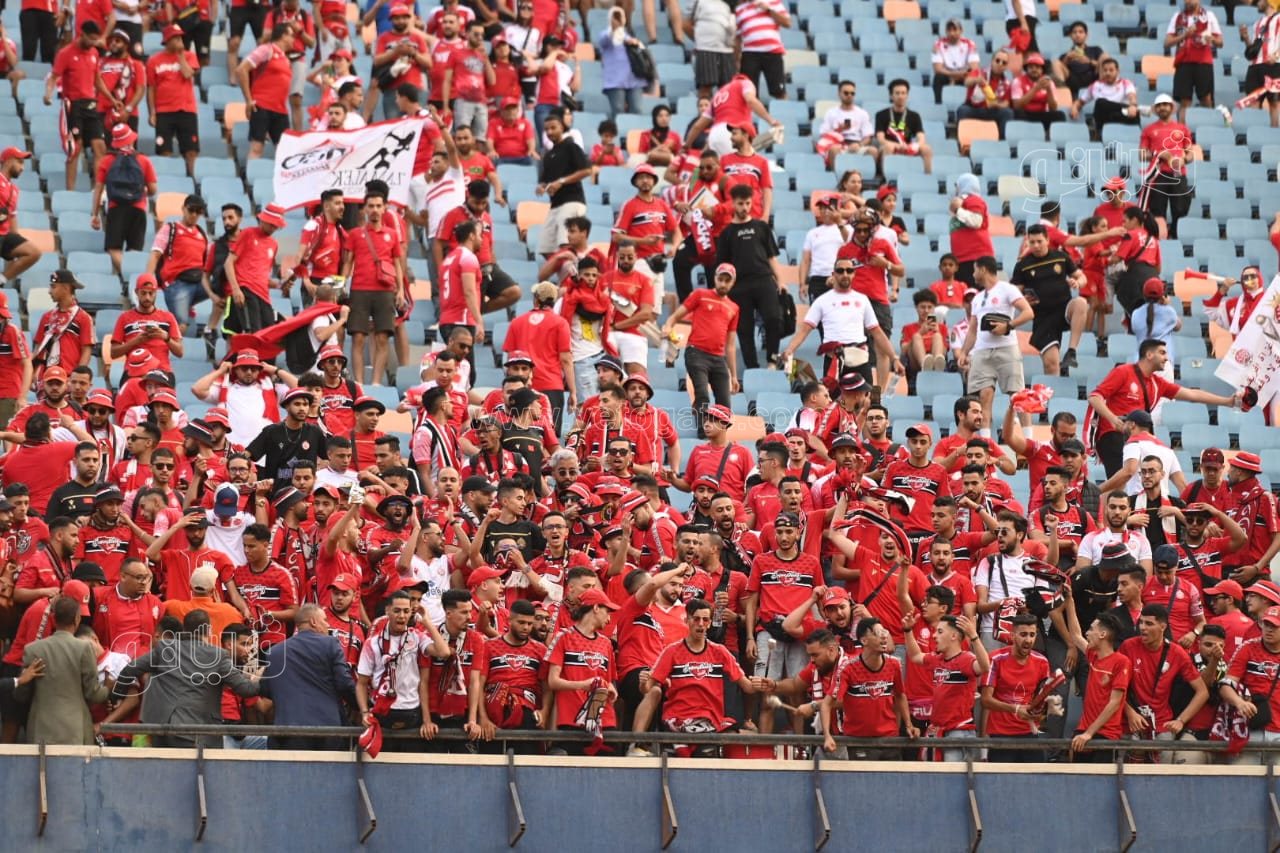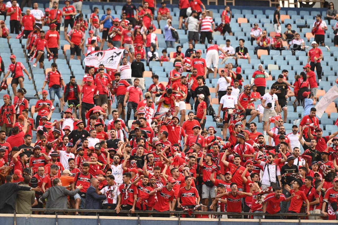 علم الزمالك يتواجد في مدرجات جماهير الوداد قبل مواجهة الأهلي (صور)