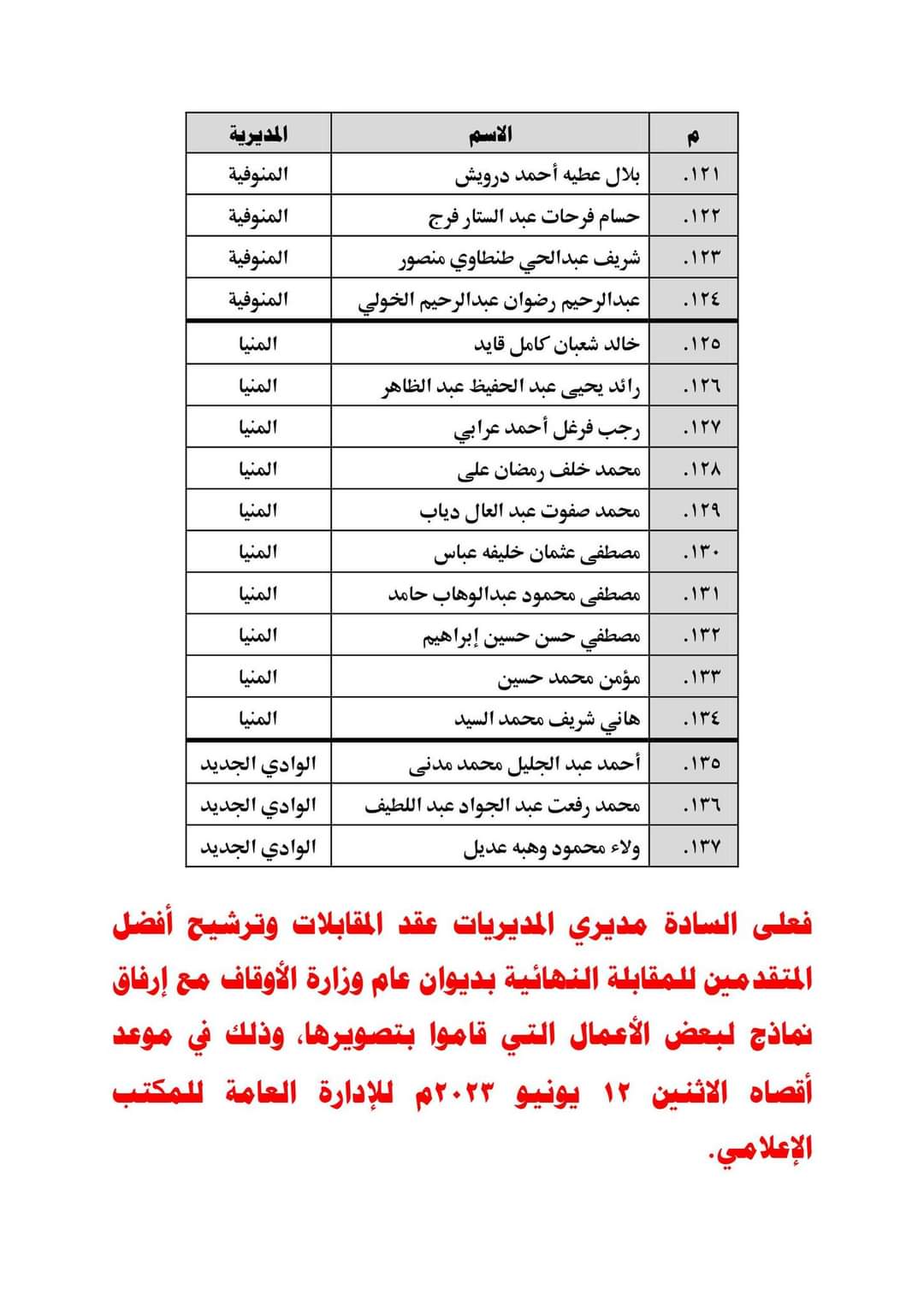 قررت وزارة الأوقاف عقد المقابلات التمهيدية بالمديريات الإقليمية لاختيار منسق إعلامي في كل مديرية من بين العاملين بالأوقاف يكون حلقة صلة بين المديرية والمكتب الإعلامي ممن تقدموا برغباتهم في العمل على الموقع الإلكتروني لوزارة الأوقاف.
