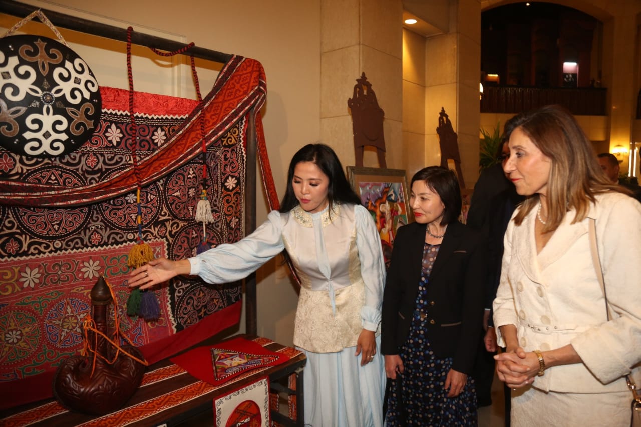 وقبيل الحفل افتتحت الدكتورة نيفين الكيلاني، معرضًا للمقتنيات التراثية والحرف اليدوية الكازاخية، ببهو المسرح الكبير، ضم مجموعة من الصور الفوتوغرافية والملابس والمشغولات اليدوية تعكس الهوية الثقافية لدولة كازاخستان.