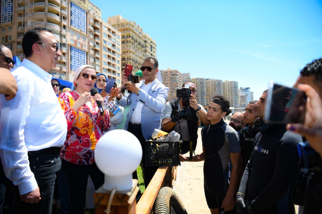 وزيرة البيئة تشارك في حملة تنظيف شاطئ السرايا العام بالإسكندرية (صور)
