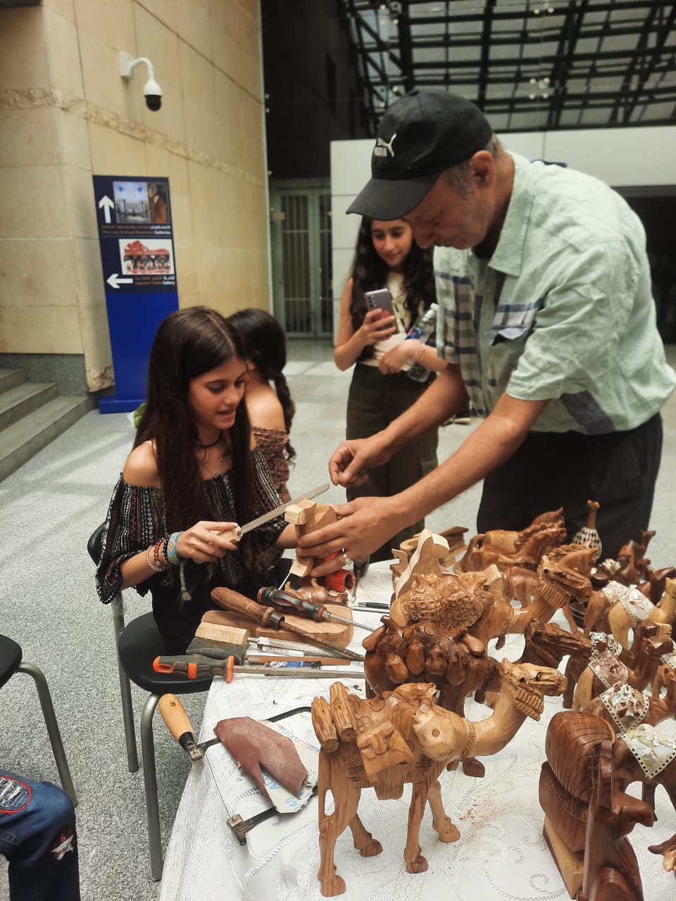 كما تم عمل عرض حي لقطع فنية منفذة بجذوع الشجر وأدوات طعام ومنتجات خشبية صديقة للبيئة، وهي مصنعة يدويًا من الخشب، وعرض حي آخر لاستخدام عرجون النخيل، وتصميم الحقائب وقطع فنية أخرى منه.