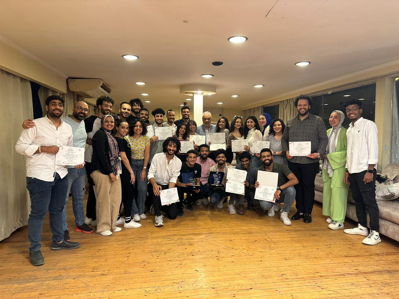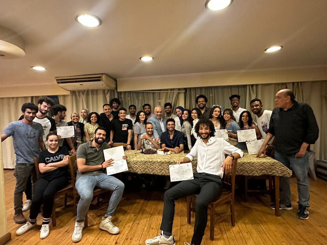 والتقط الشباب المبدعون الحاصلون على الجوائز في المجالات الفنية المختلفة عددا من الصور التذكارية مع الدكتور أشرف زكي؛ والذي جلس معهم لما يقرب من ساعات قليلة للحديث عن الفن والإبداع والمستقبل.