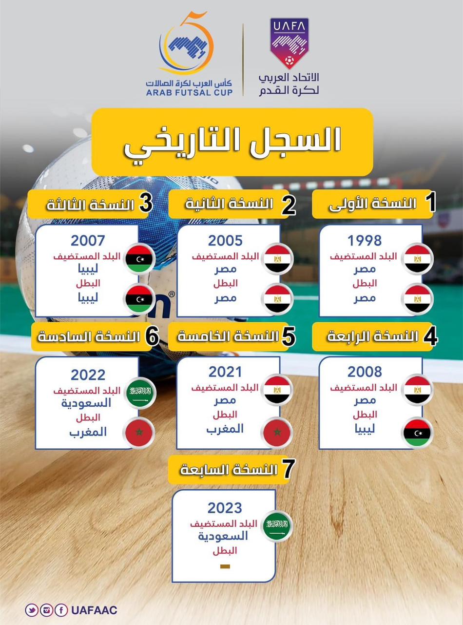 النسخة التي تنطلق غدا على الأراضي السعودية تحمل الرقم 7 في بطولة كأس العرب لكرة الصالات.