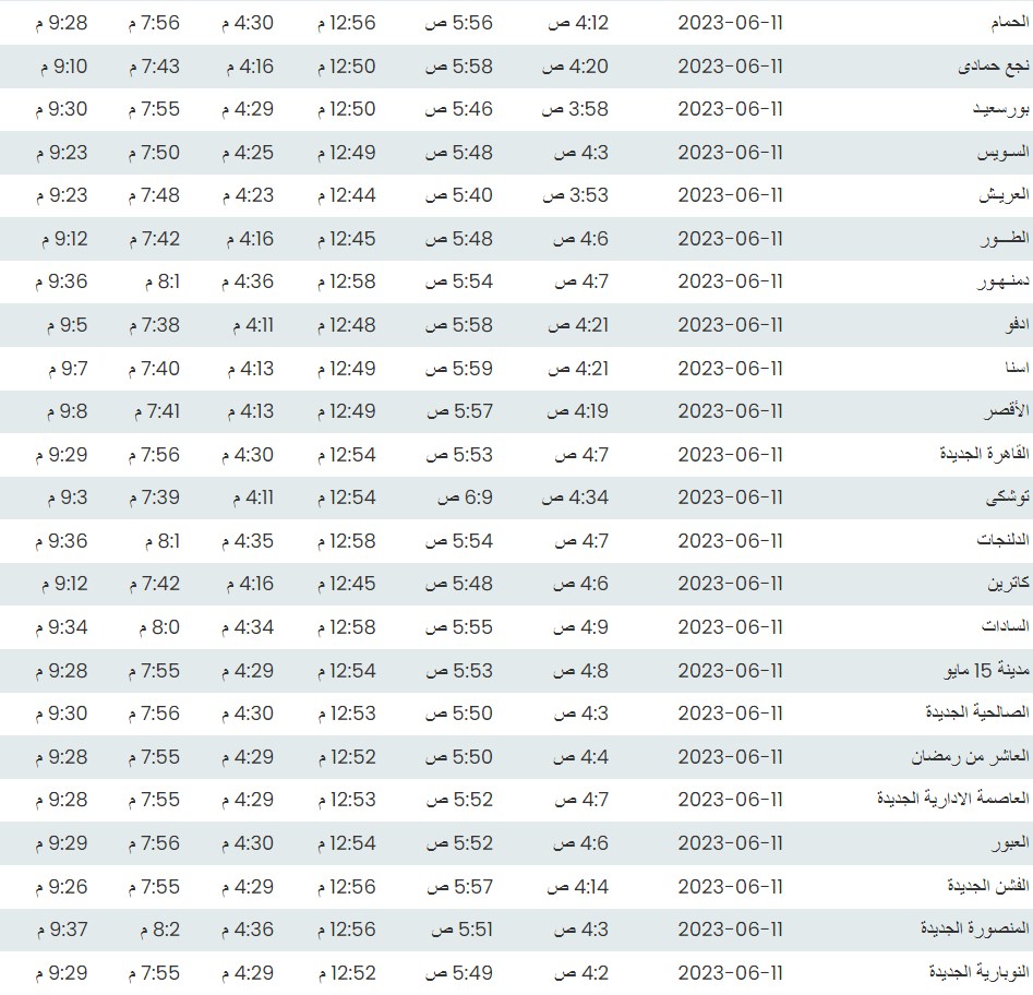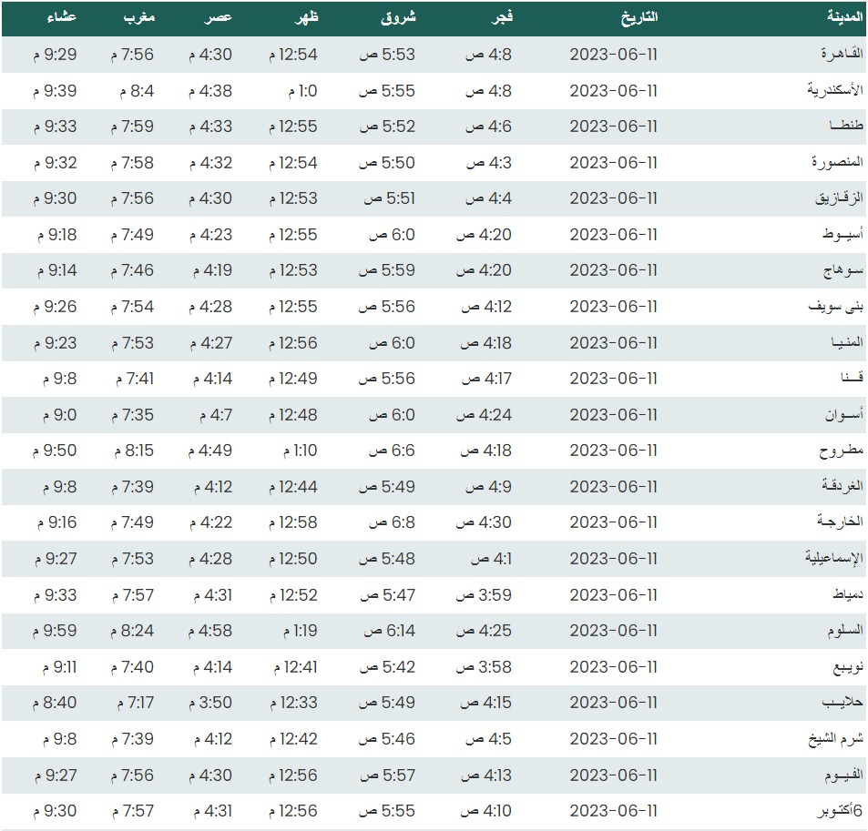 مواقيت الصلاة اليوم بتوقيت القاهرة