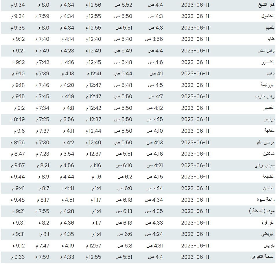 مواقيت الصلاة اليوم بتوقيت أسيوط