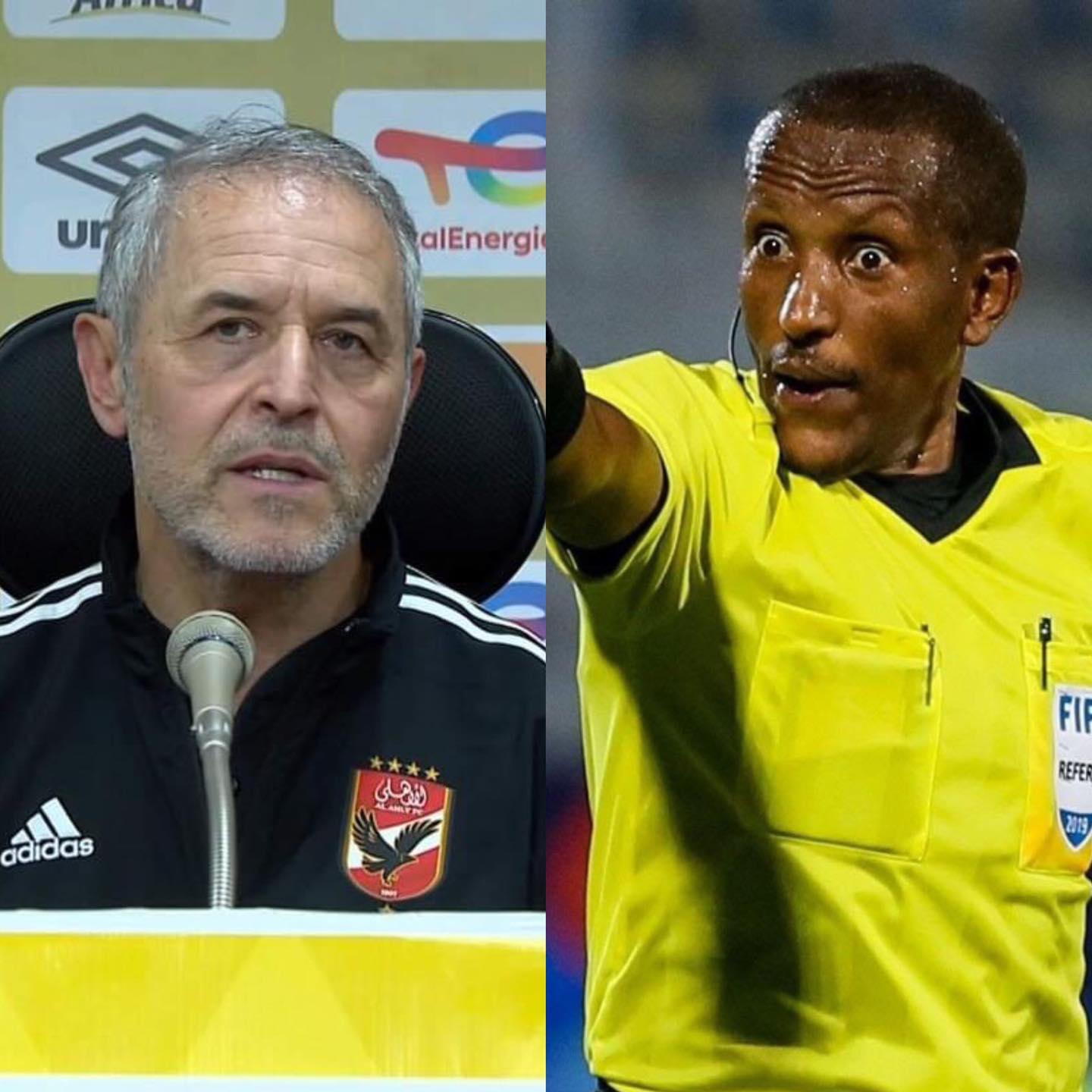 أما مسعد إبراهيم فقال: "اكرين فيكتور جوميز اللي كان مشهور إنه أفضل حكم في أفريقيا أهه كانت آخر مباراة له ماتش نهائي دوري أبطال أفريقيا في كازابلانكا السنة اللي فاتت وبعدها اعتزل... باملاك تيسيما هو أصلًا حكم... وله سوابق معانا سيئة وأخطاء متعمدة باملاك هو حكم ماتش العودة في الدار البيضاء طبعًا إختياره مش من محض الصدفة وبرضه هيعتزل بعد الماتش.. لابد مجلس الإداره تعترض على الحكم باملاك تيسيما فى مباراة العوده لانه... آخر ماتش له وهيعتزل كمان زي جوميز! لازم نسجل إعتراضنا وده حقنا"