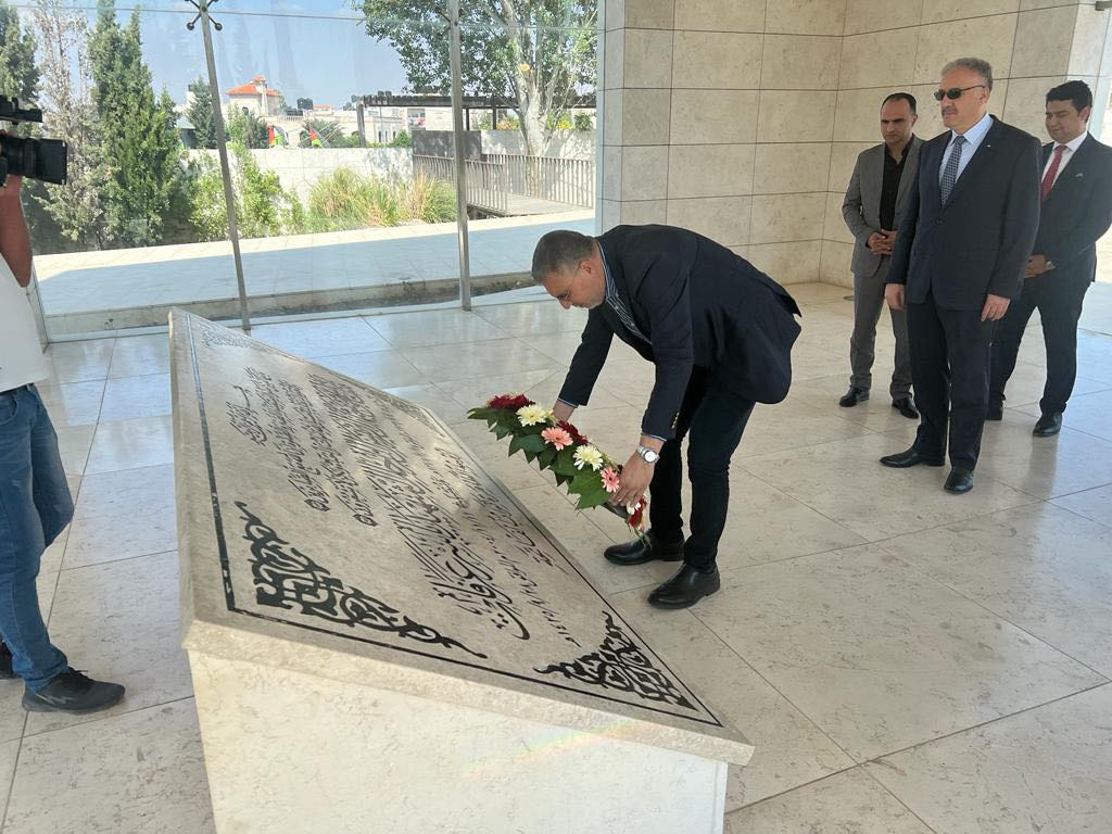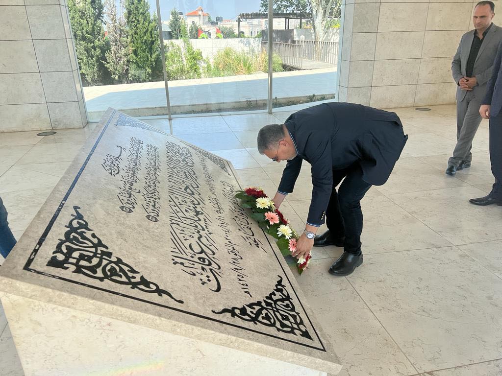 عمرو الليثي يزور قبر ياسر عرفات علي هامش افتتاح مكتب الإذاعات الإسلامية
