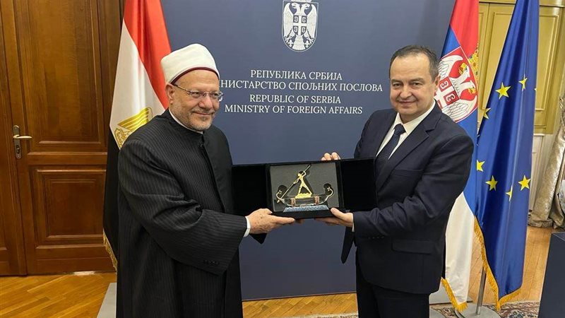 وقال وزير الخارجية الصربي: "تربطني بمصر علاقة محبة وثيقة، وأنتوي زيارة مصر قريبًا رفقة رئيس الجمهورية"، مبديًا اعتزازه بزيارة فضيلة مفتي الجمهورية لبلجراد، والذي يعد أحد أهم القيادات الدينية الوسطية في العالم.