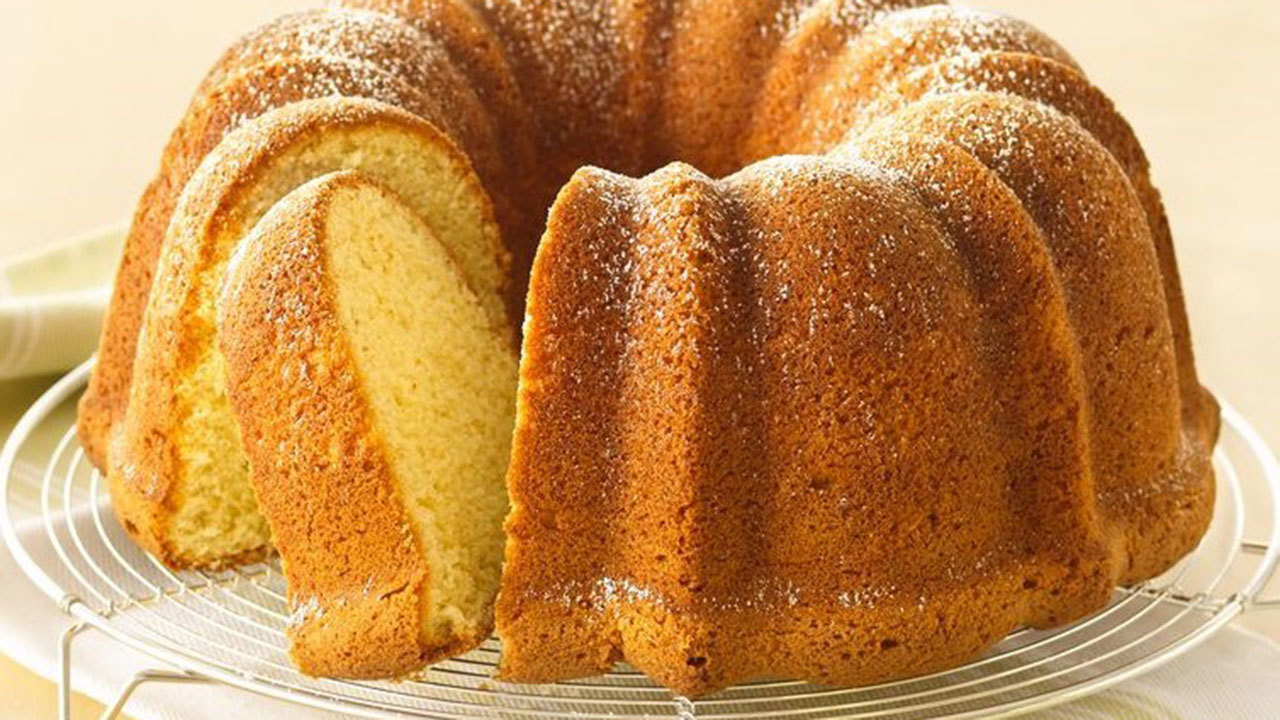 يسكب الخليط في قالب الكيك. ثم يساوى بالسباتولا من الوجه.