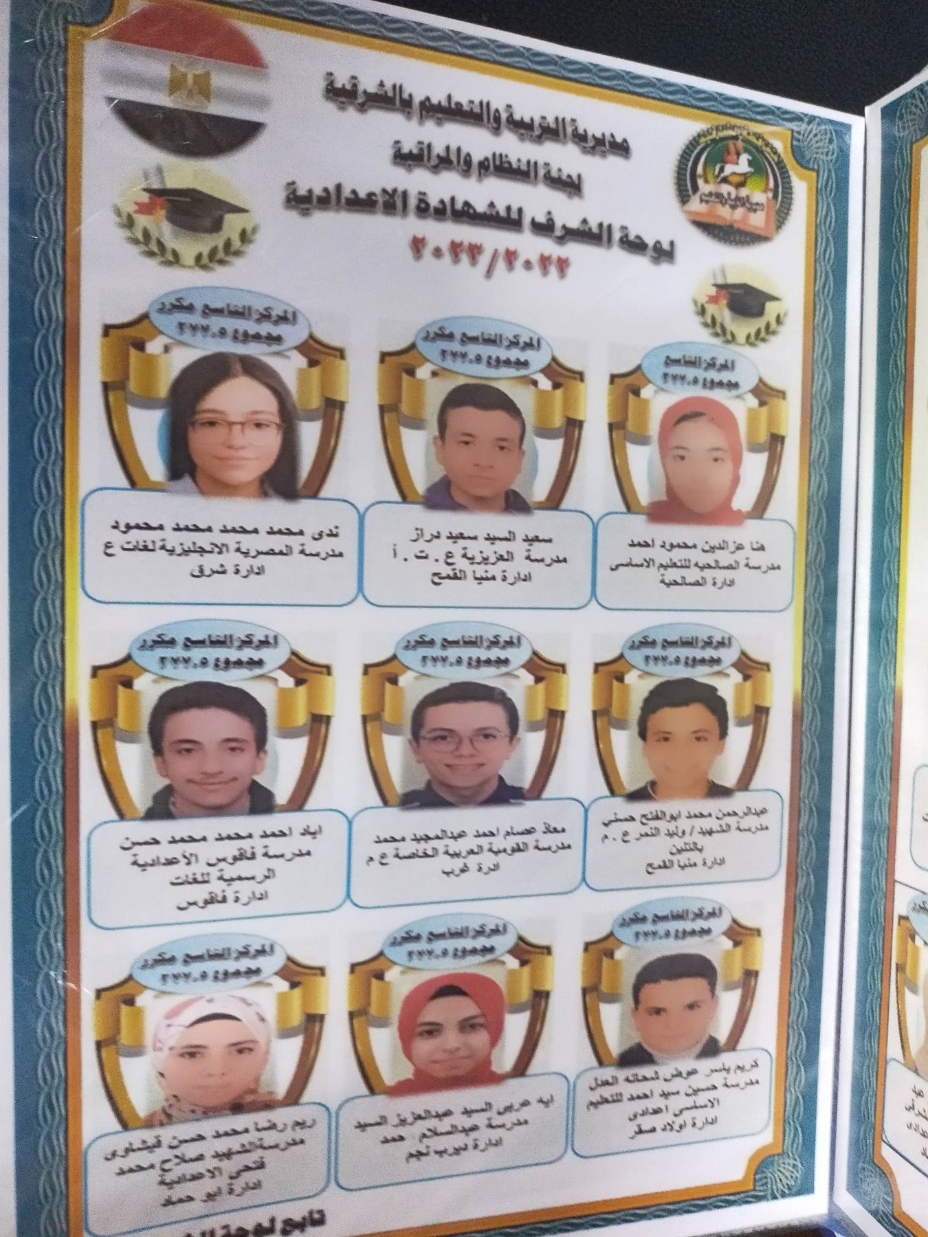 ننشر أسماء أوائل الشهادة الإعدادية في محافظة الشرقية