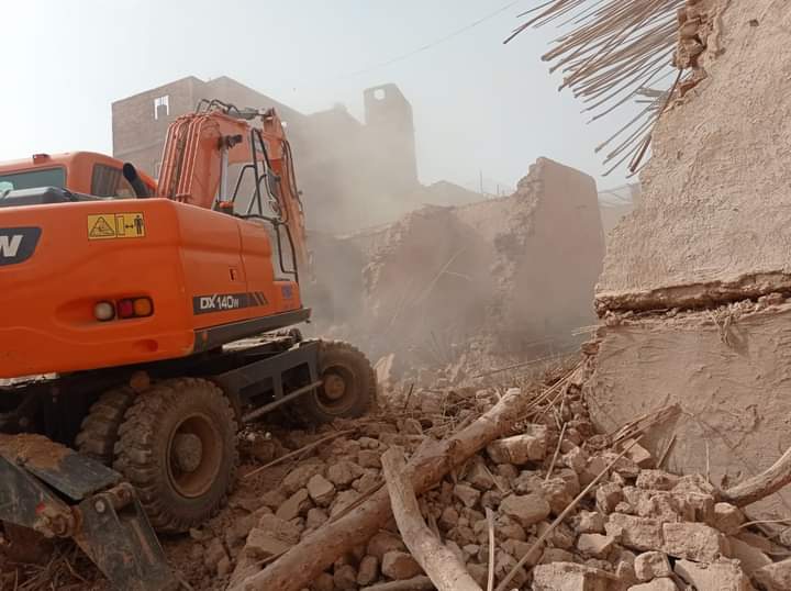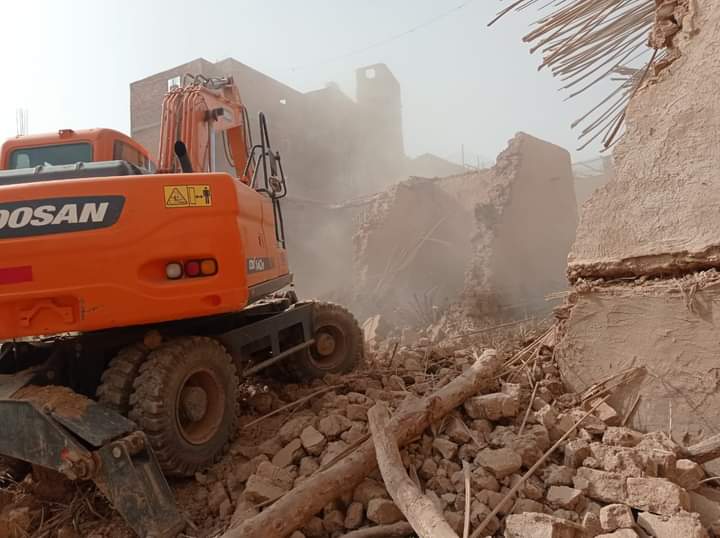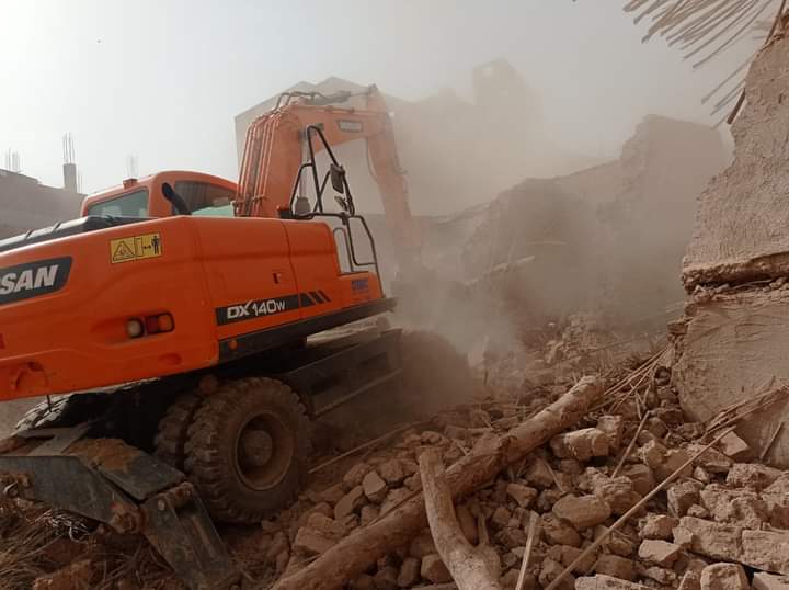إزالة منزل آيل للسقوط بمدينة موط بالوادي الجديد