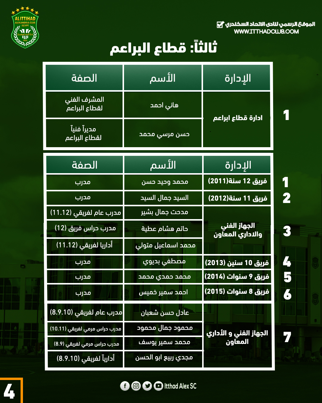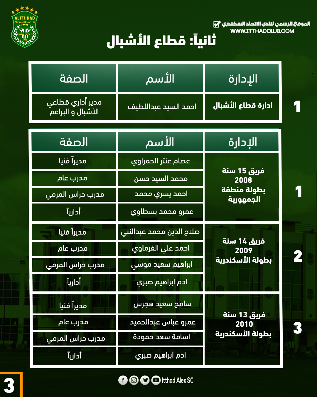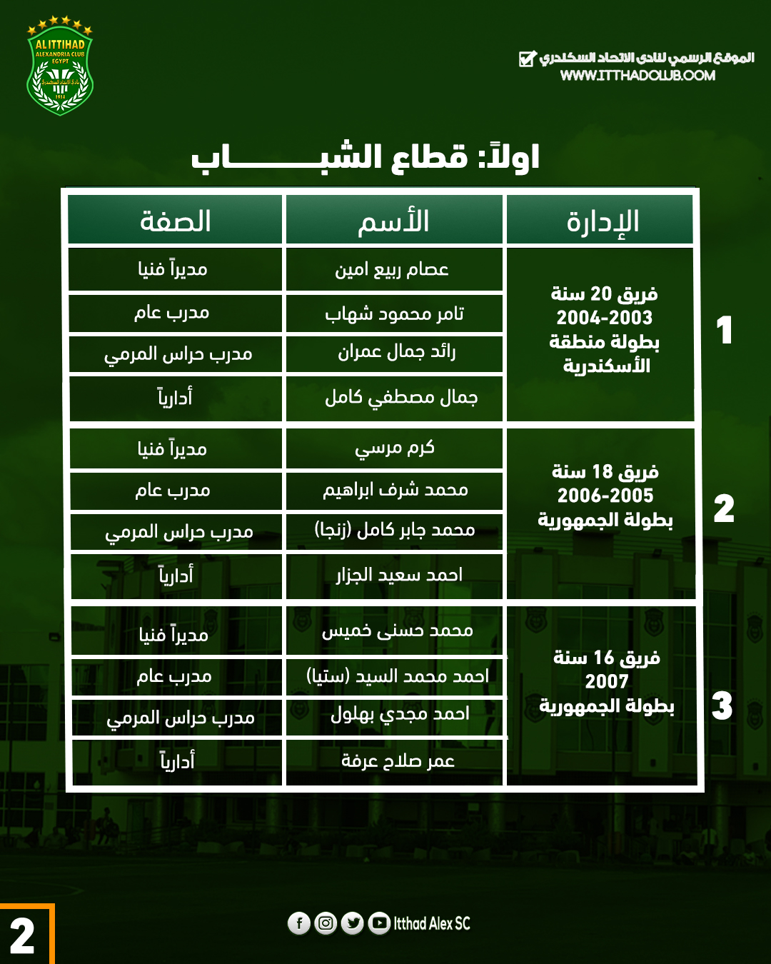 تشكيل الأجهزة الفنية والادارية لقطاع الناشئين بنادي الاتحاد السكندري