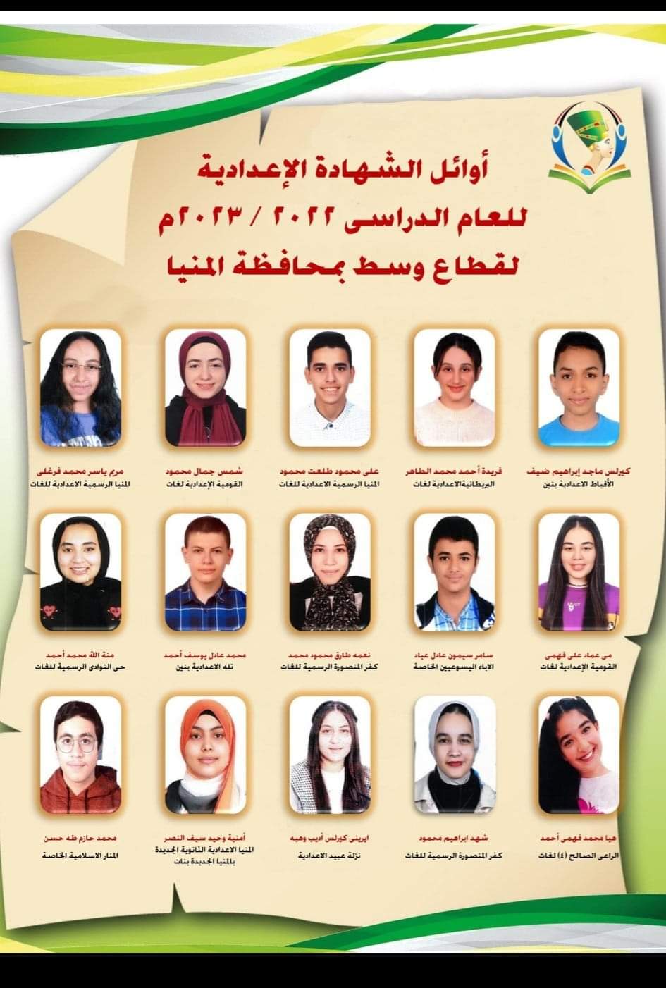 أسماء أوائل الشهادة الإعدادية 2023 في المنيا
