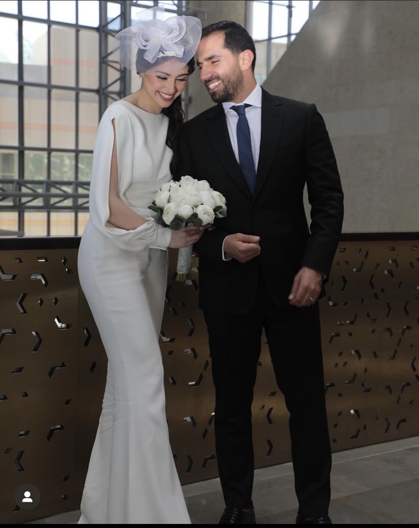 وظهرت “ماريتا” في حفل زفافها بفستان أنيق باللون الأبيض بينما ارتدي عريسها بدلة جذابة