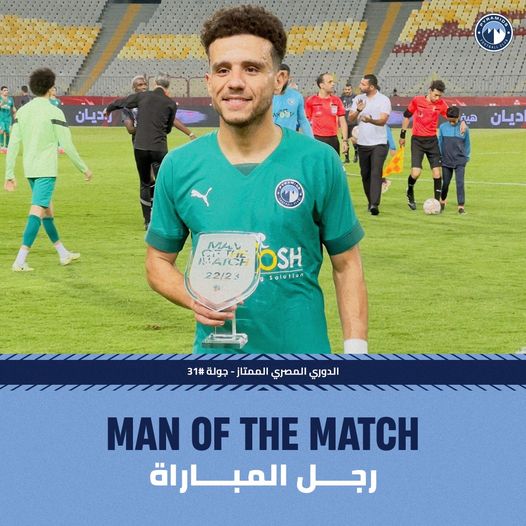 وقدم اللاعب مباراة غاية في القوة وساهم في فوز الفريق بالمباراة وحصد 3 نقاط غالية رفعت رصيد بيراميدز إلى 64 نقطة في صدارة قمة جدول ترتيب الدوري الممتاز.