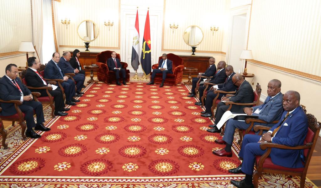 كما أعرب الرئيس عن اعتزاز مصر بالعلاقات الأخوية التي تربطها بأنجولا في أبعادها المختلفة، خاصةً ما يتعلق بدور مصر في دعم جهود التنمية في أنجولا عبر تقديم برامج الدعم الفني وبناء القدرات لإعداد الكوادر الأنجولية، مشيدًا على وجه الخصوص بوتيرة النمو الاقتصادي التي تشهدها أنجولا كأحد النماذج الناجحة في القارة الأفريقية، ومنوهًا إلى اهتمام مصر بزيادة حجم التبادل التجاري والاستثمارات بين البلدين، وتعزيز دور قطاع الأعمال المصري في السوق الأنجولية في مختلف المجالات خلال الفترة المقبلة.