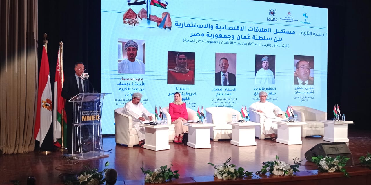 وأعرب الدكتور أحمد غنيم الرئيس التنفيذي لهيئة المتحف، خلال كلمته التي ألقاها في الجلسة الحوارية التي عقدت خلال الملتقى تحت عنوان: "مستقبل العلاقات الاقتصادية والاستثمارية بين سلطنة عمان ومصر..آفاق التطور وفرص الاستثمار"، عن سعادته باستضافة المتحف لهذا الحدث الهام، داخل هذا الصرح العظيم بأجوائه العريقة التي تعكس تاريخ مصر العظيم، مثمنًا على عمق العلاقات التاريخية بين البلدين والحرص على تعزيز هذه العلاقات في كافة المجالات ولاسيما الاقتصاد والذي يعد أحد أهم الركائز الأساسية لتقوية أواصر هذا التعاون، وما تتطلع إليه من أجل دعم الشعبيين الشقيقين والمنطقة العربية والإقليم بأكمله.