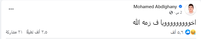 أثار بوست اللاعب محمد عبد الغني لاعب نادي الزمالك على صفحته الشخصية “فيس بوك”، جدلًا كبيرًا بين محبيه وجمهور الزمالك.