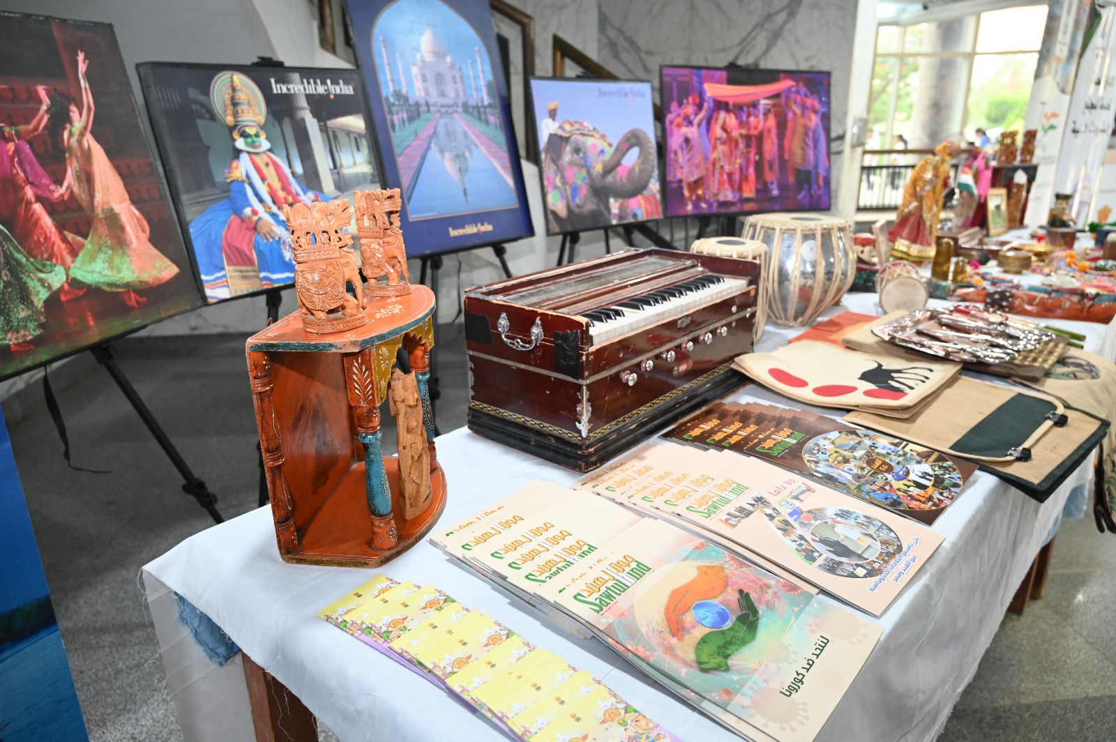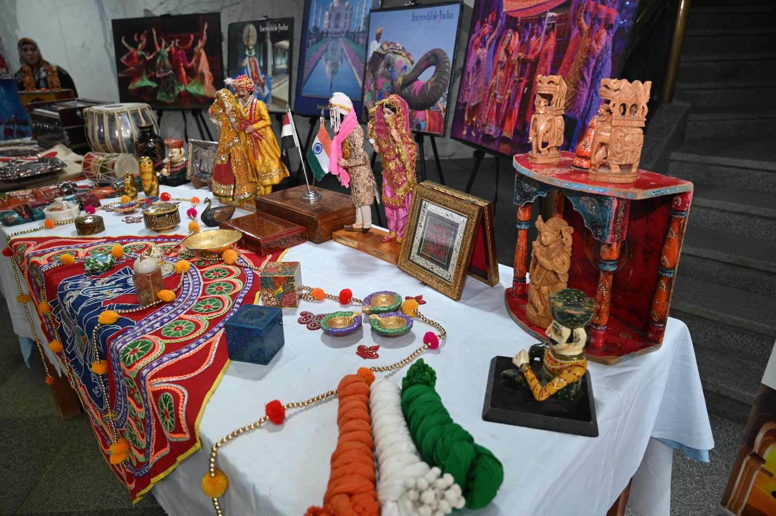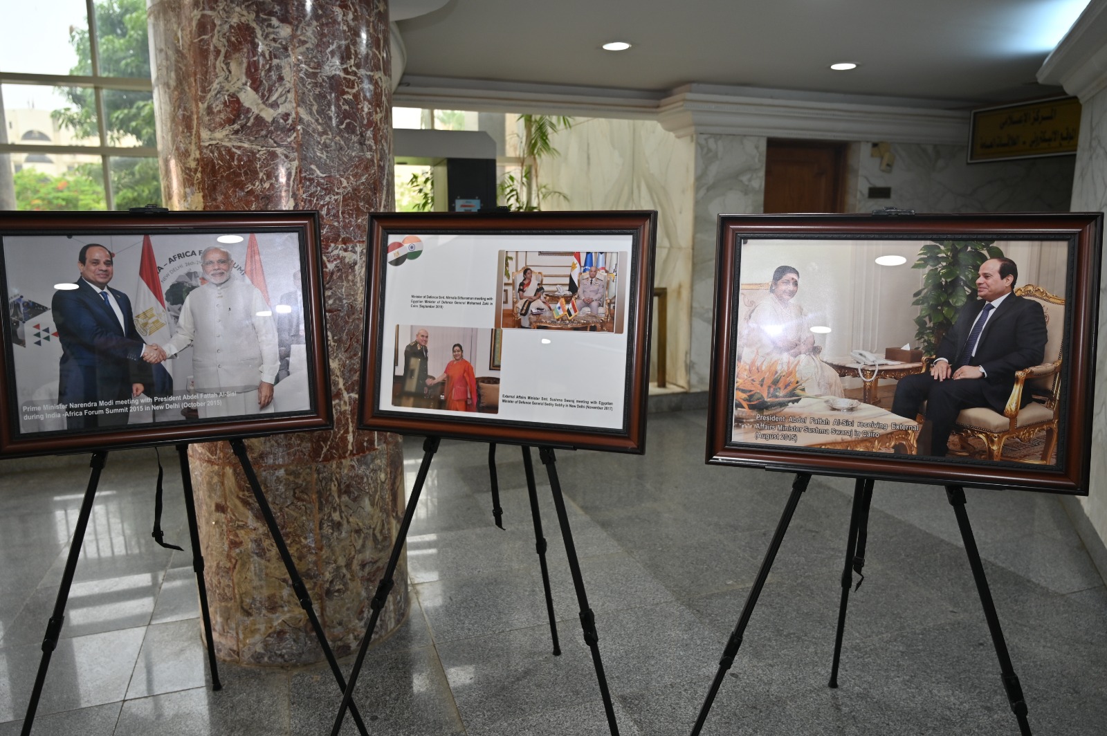 وتضمن المعرض الفني عرضًا لبعض مظاهر العلاقات المصرية والهندية، بالإضافة إلى لوحات فنية لأهم المعالم بالهند وبعض المشغولات اليدوية الهندية وآلات موسيقية قديمة.