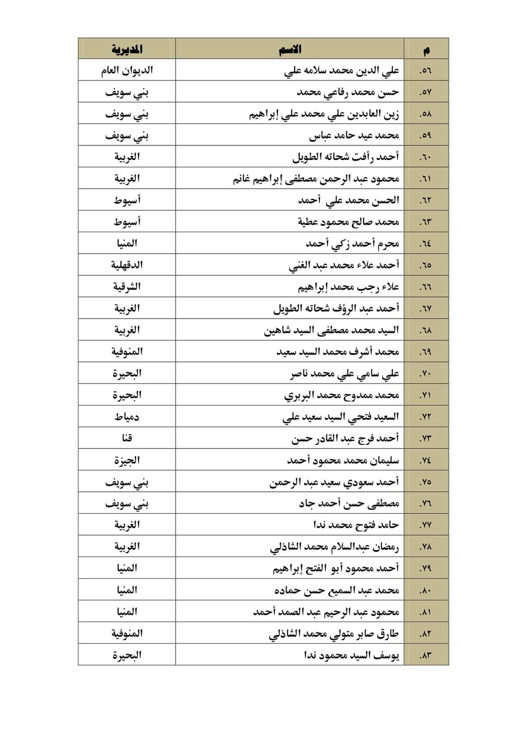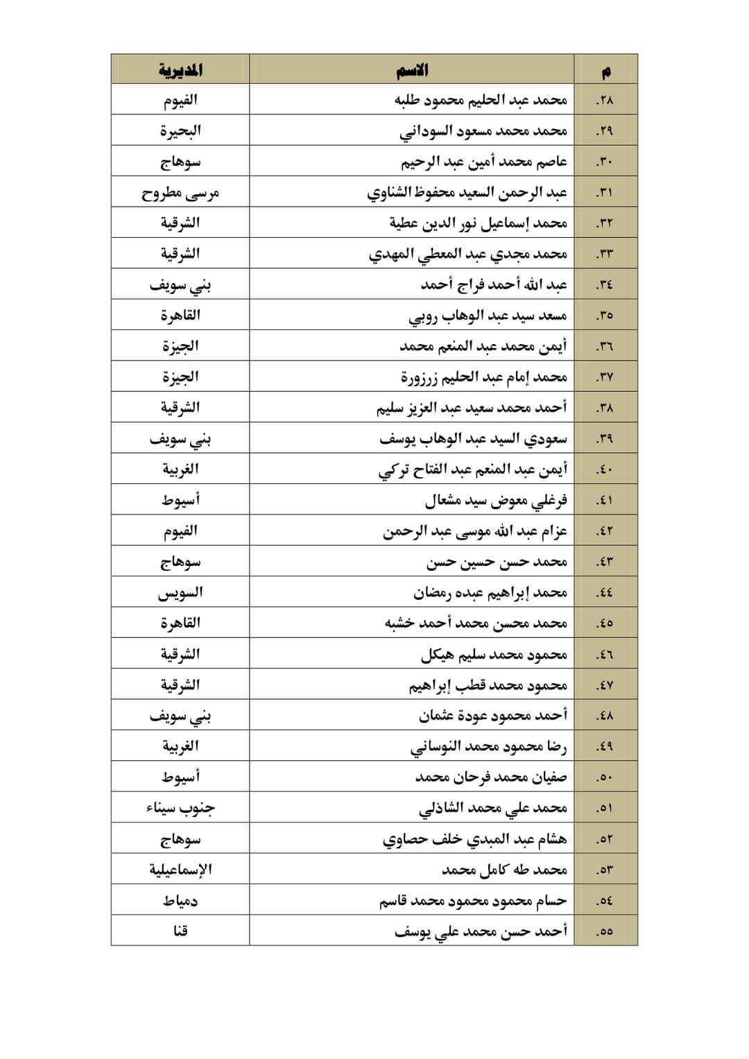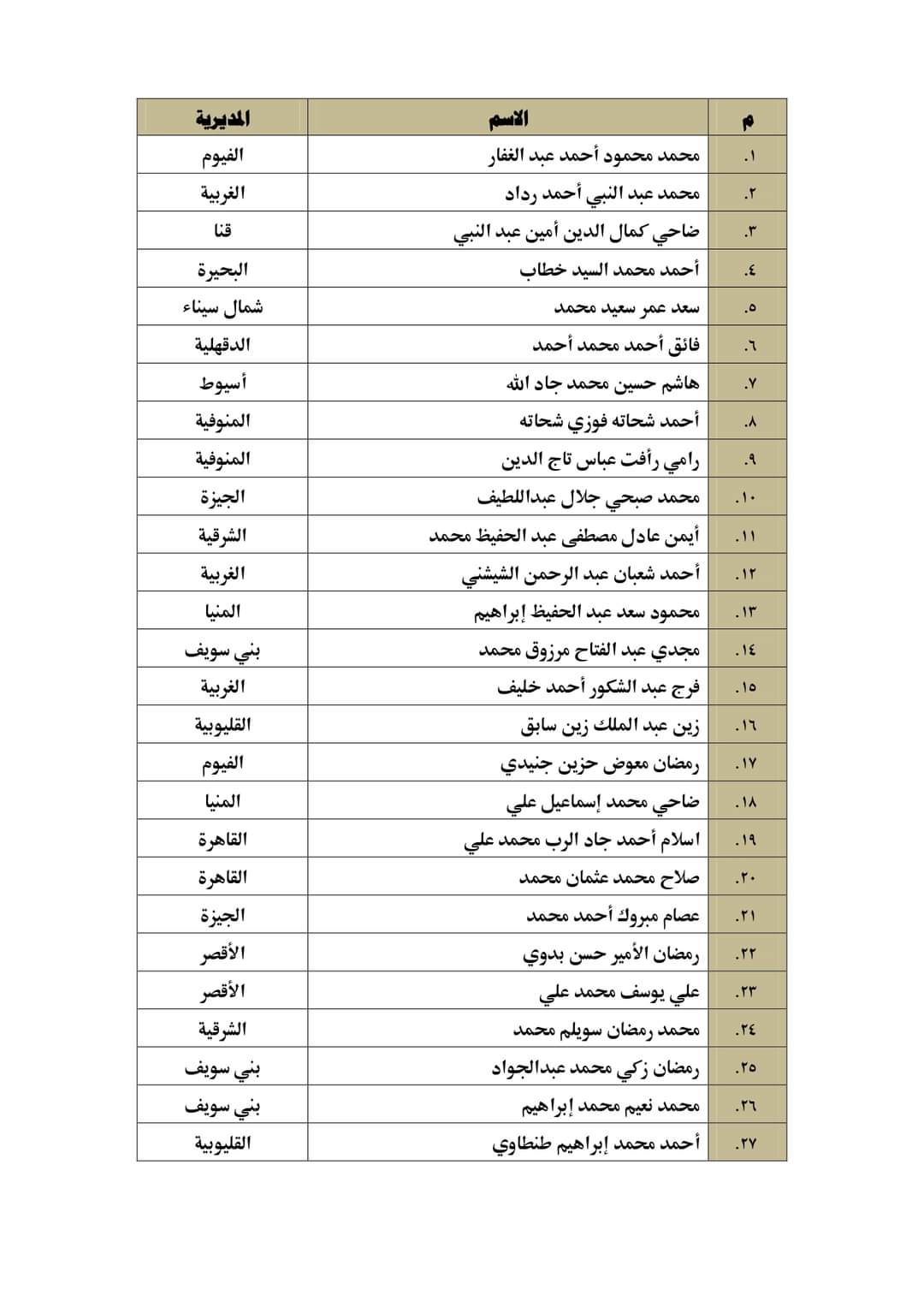 ونشرت الوزارة كشفا بأسماء المتقدمين للمسابقة: