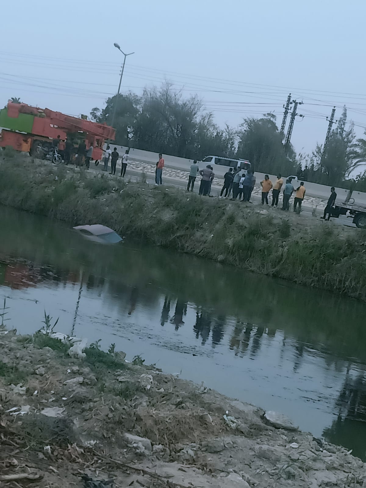 سقوط سيارة في ترعة بورسعيد بطريق الفردان في الإسماعيلية (صور)