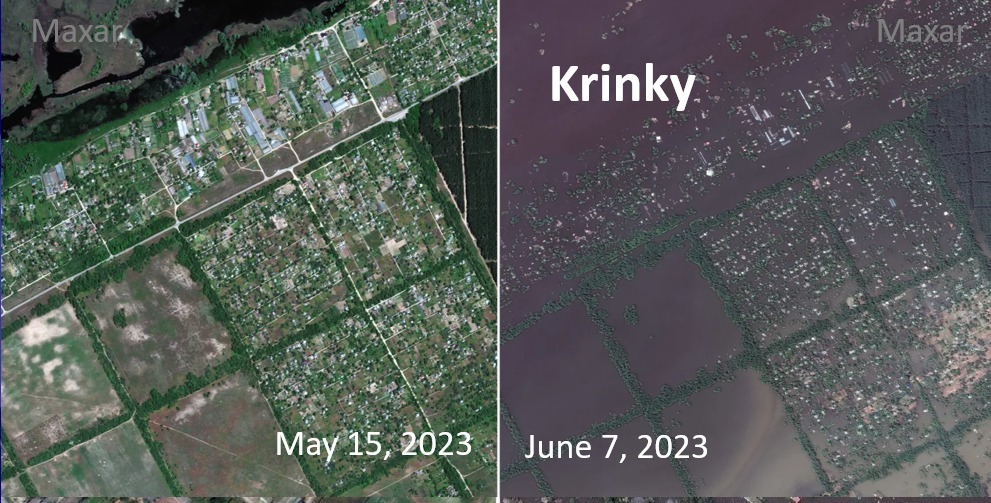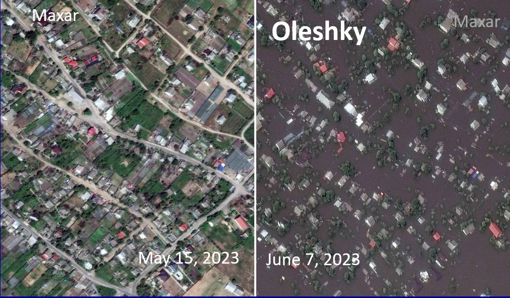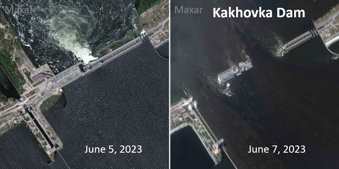 وقال شراقي "على صفحته الشخصية بـ “فيس بوك”: "تظهر الأقمار الصناعية الأضرار من خلال سلسلة صور قبل وبعد تدمير سد كاخوفكا الأوكراني".