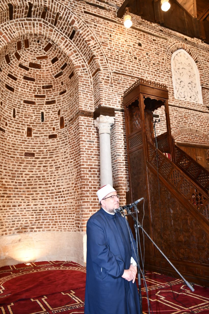 ولفت إلى أن التطوير الآن يجري على قدم وساق في مسجدي السيدة نفيسة (رضي الله عنها) والسيدة زينب (رضي الله عنها) مع مئات المساجد التي يعاد تطويرها على مستوى الجمهورية، هذه هي مصر وهذا دورنا في عمارة بيوت الله (عز وجل) عمارة غير مسبوقة، نسأل الله أن يتقبل منا صالح الأعمال، وأن يوفقنا للحفاظ على تراثنا وعودة مساجدنا التراثية والأثرية وسائر المساجد إلى رسالتها العظيمة دعويًا وتثقيفيًا وتنويريًا، وسنجتهد لجعل هذا المسجد كسائر المساجد منارة دعوية ثقافية.