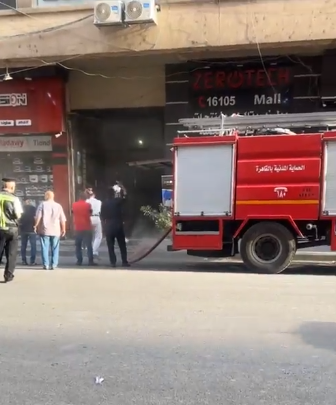 حريق محل تجاري أمام مول البستان